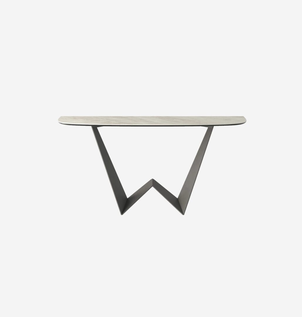 Консоль Reverse дополняет одноименное семейство столов. Культовая окрашенная металлическая основа поддерживает контурный верх, доступный в нескольких бесчисленных вариантах керамогранита.
