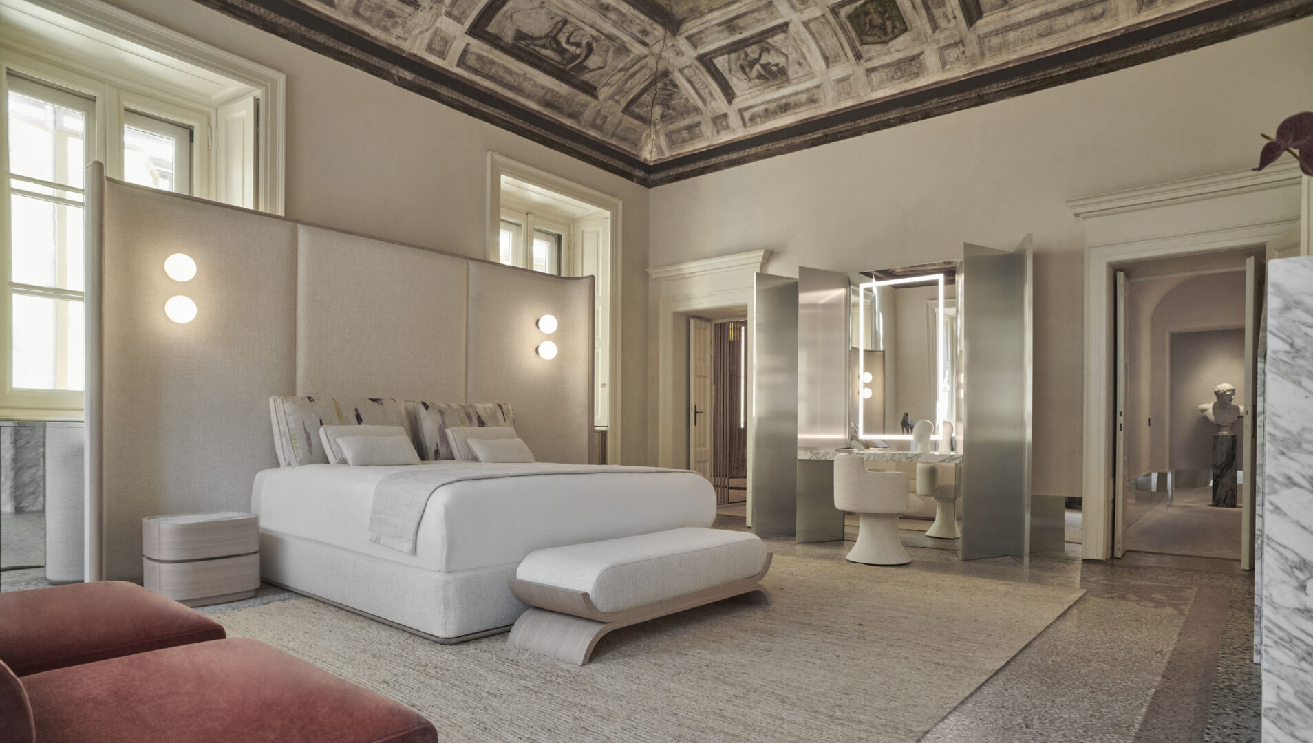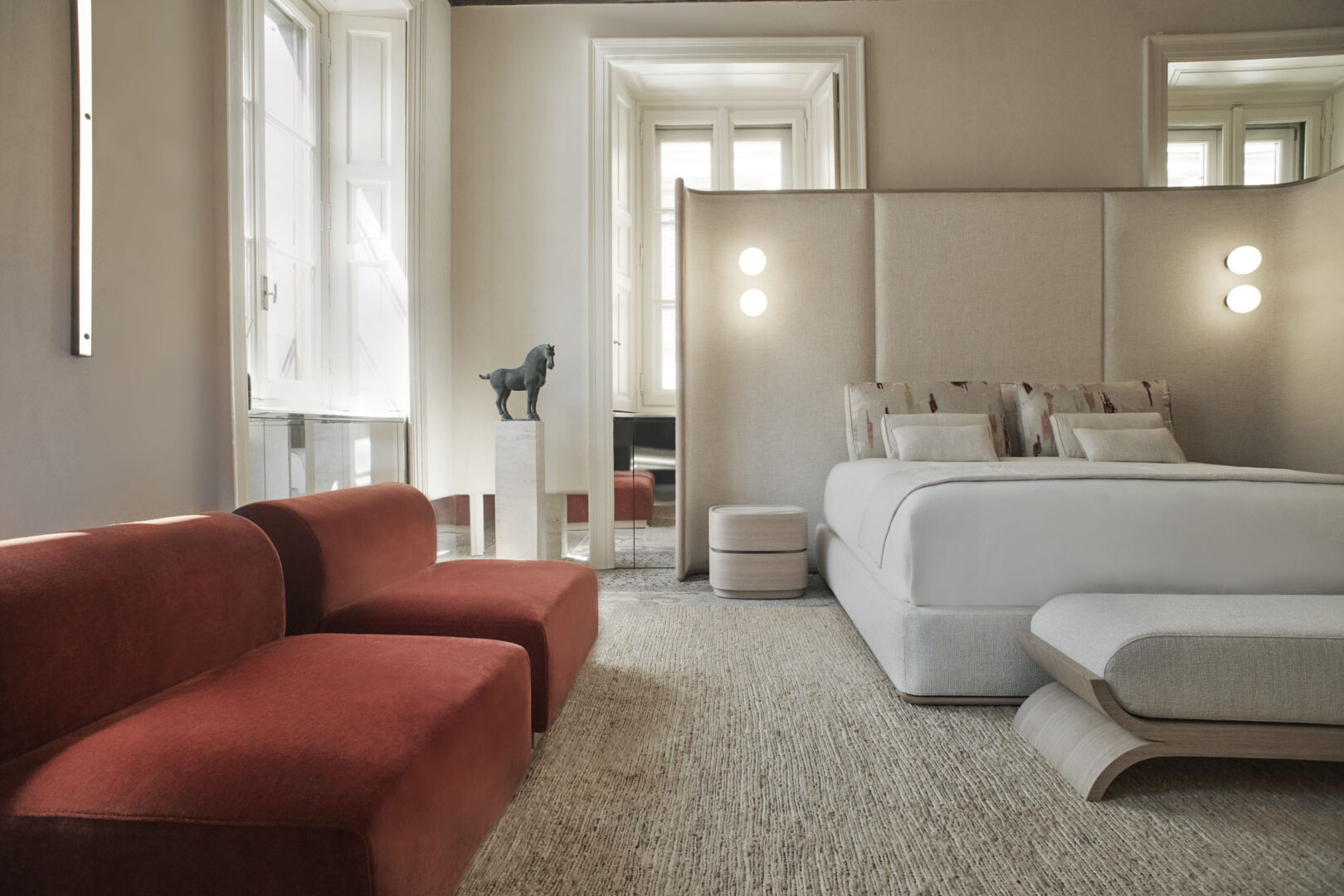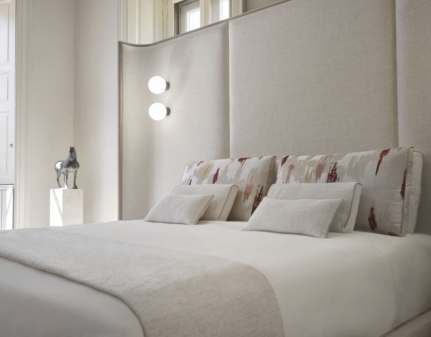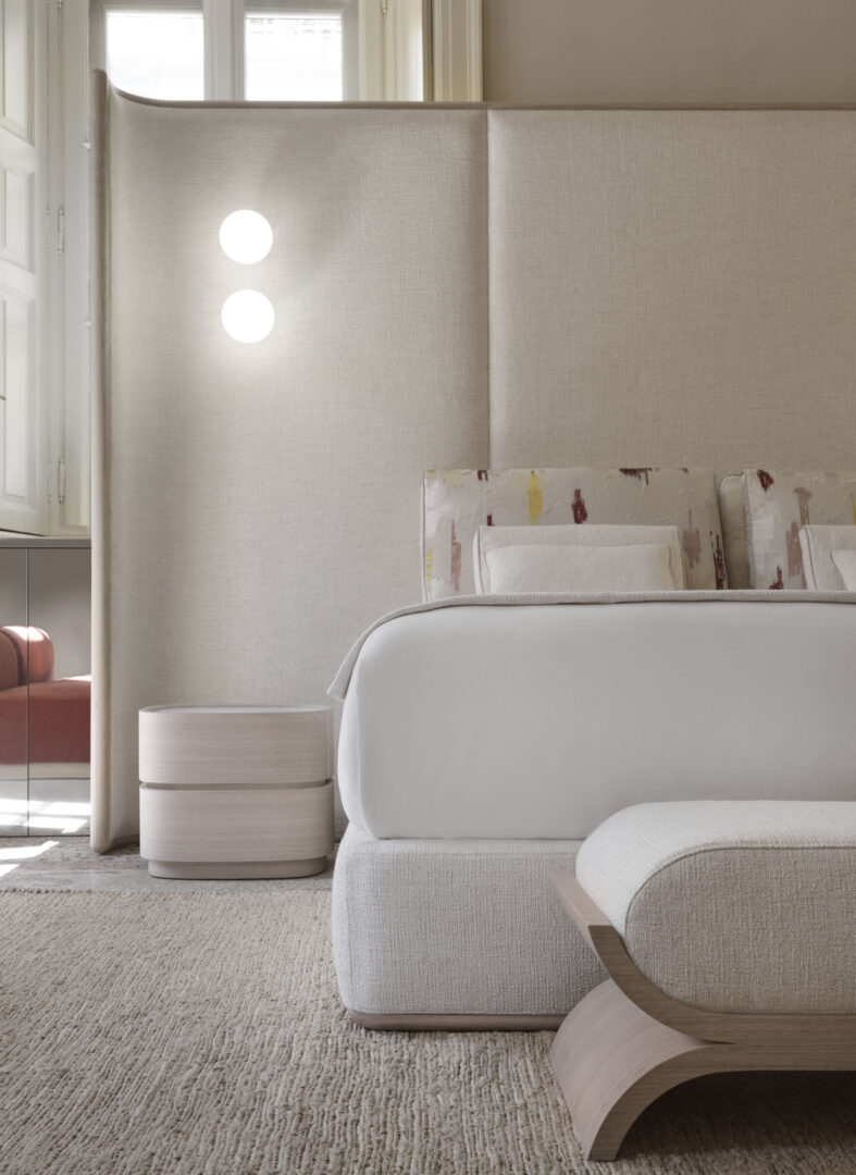 Кровать Alcova спроектирована таким образом, чтобы стать бесспорным центральным элементом любого помещения. Ее внушительное изголовье полностью обрамлено мягко закругленной конструкцией из массива дуба ручной работы, придающей ей естественную теплоту и элегантность.
