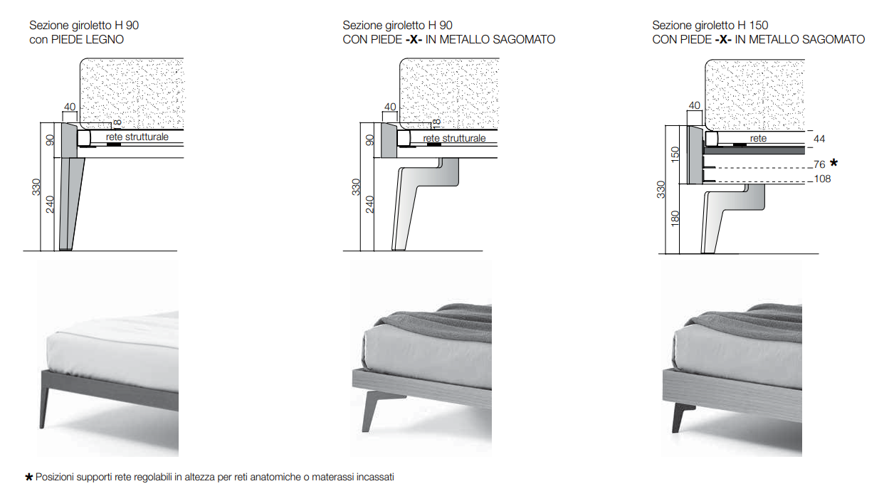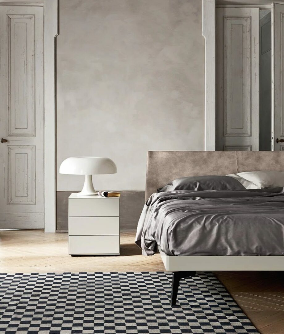 Изголовье кровати Aliante 2.0 имеет тонкую, но мягкую обивку спереди, чтобы обеспечить удобную опору. Задняя часть изголовья и каркас кровати облицованы или лакированы, с деревянными ножками в той же отделке или из металла. Несколько возможных комбинаций между кожаной обивкой или искусственной кожей с деревянными поверхностями или лакированными оттенками, чтобы создать контрасты, богатые индивидуальностью, или элегантные эффекты тона в тон.