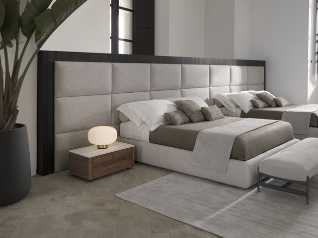 Кровать BOISERIE, разработанная Джо Гарзоне (Joe Garzone), имеет большое и важное изголовье в стиле буазери, состоящее из различных съемных и модульных панелей, которые могут быть разных размеров, что идеально подходит для проектов по контракту и жилых проектов. Кровать также доступна с каркасом в виде контейнера.