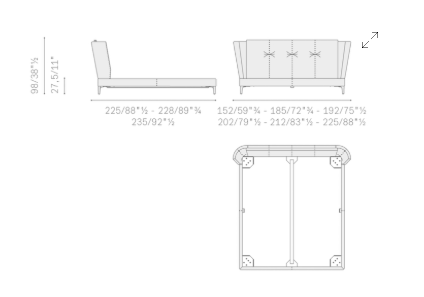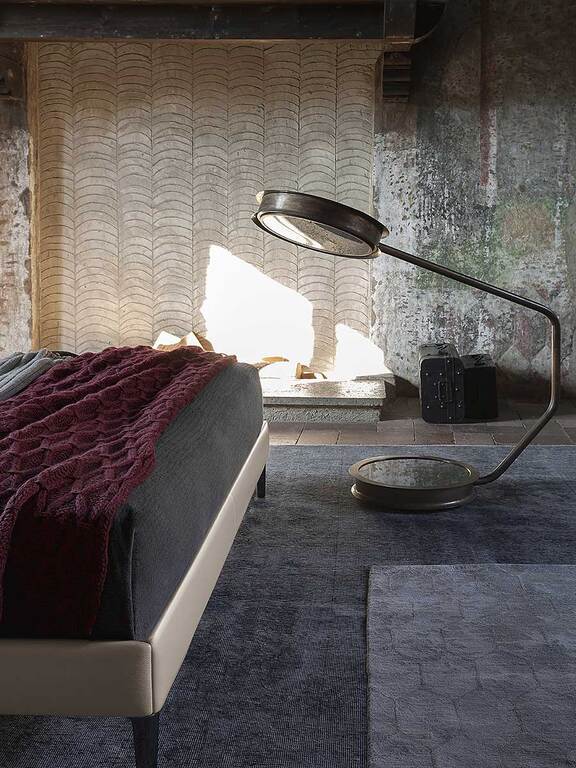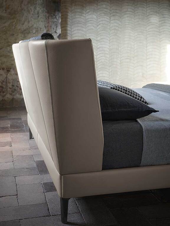 Каркас кровати Bretagne выполнен из массива ели и изножья из тополиной фанеры с набивкой из пенополиуретана. Ножки изготовлены из алюминия с покрытием серого цвета оружейного металла. Изголовье кровати состоит из каркаса из массива тополя, бука, тюльпана и березовой фанеры. Обивка выполнена из пенополиуретана и полиэфирной ваты. Подушки изготовлены из пенополиуретана и полиэфирной ваты. Они крепятся к изголовью с помощью застежек-молний и липучек. Обивка кровати Bretagne создает элегантные декоративные эффекты, сочетая кожу Pelle Frau® для каркаса и изголовья кровати со съемными тканевыми чехлами для подушек. В качестве альтернативы также доступна версия, полностью обитая кожей.