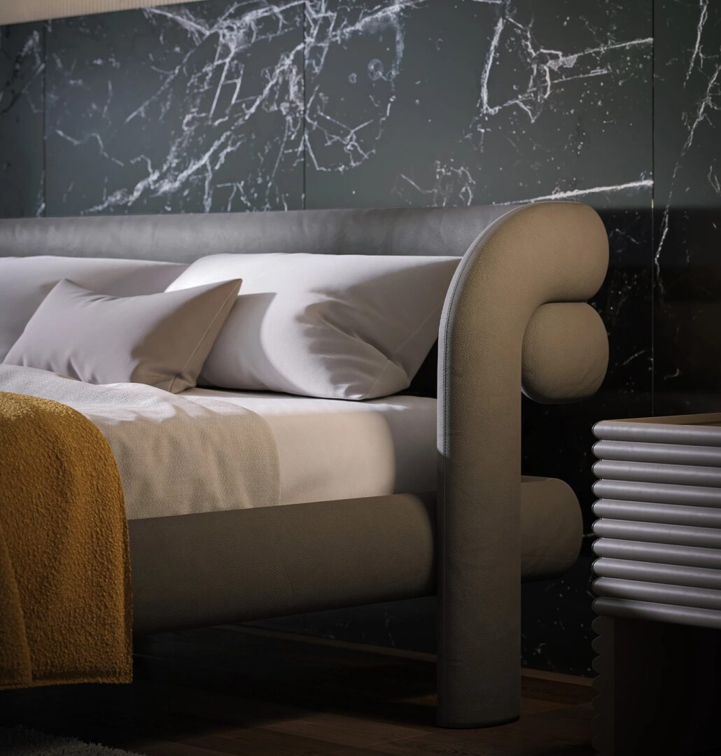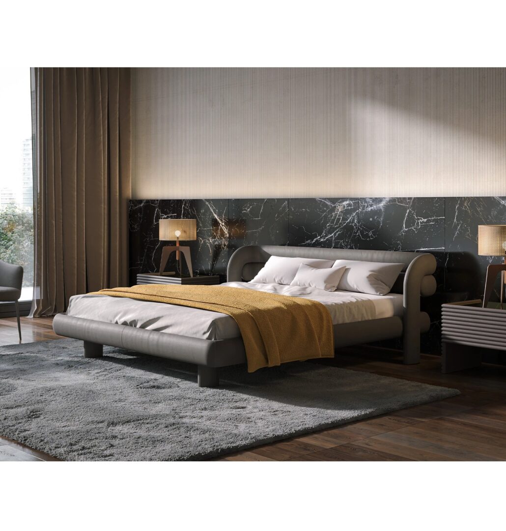 Двуспальная кровать Bull, полностью обтянутая мягкой кожей, является символом современного дизайна с решительным и смелым характером благодаря своим скульптурным формам. Каркас кровати и изголовье кровати, кажется, сливаются в мягкие и теплые объятия, создавая элемент мебели, в котором искусная обработка и выбор материалов достигают идеального синтеза.