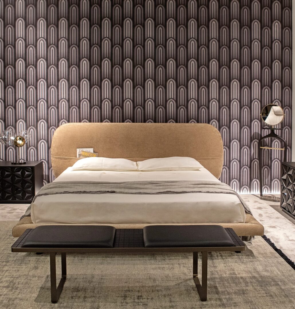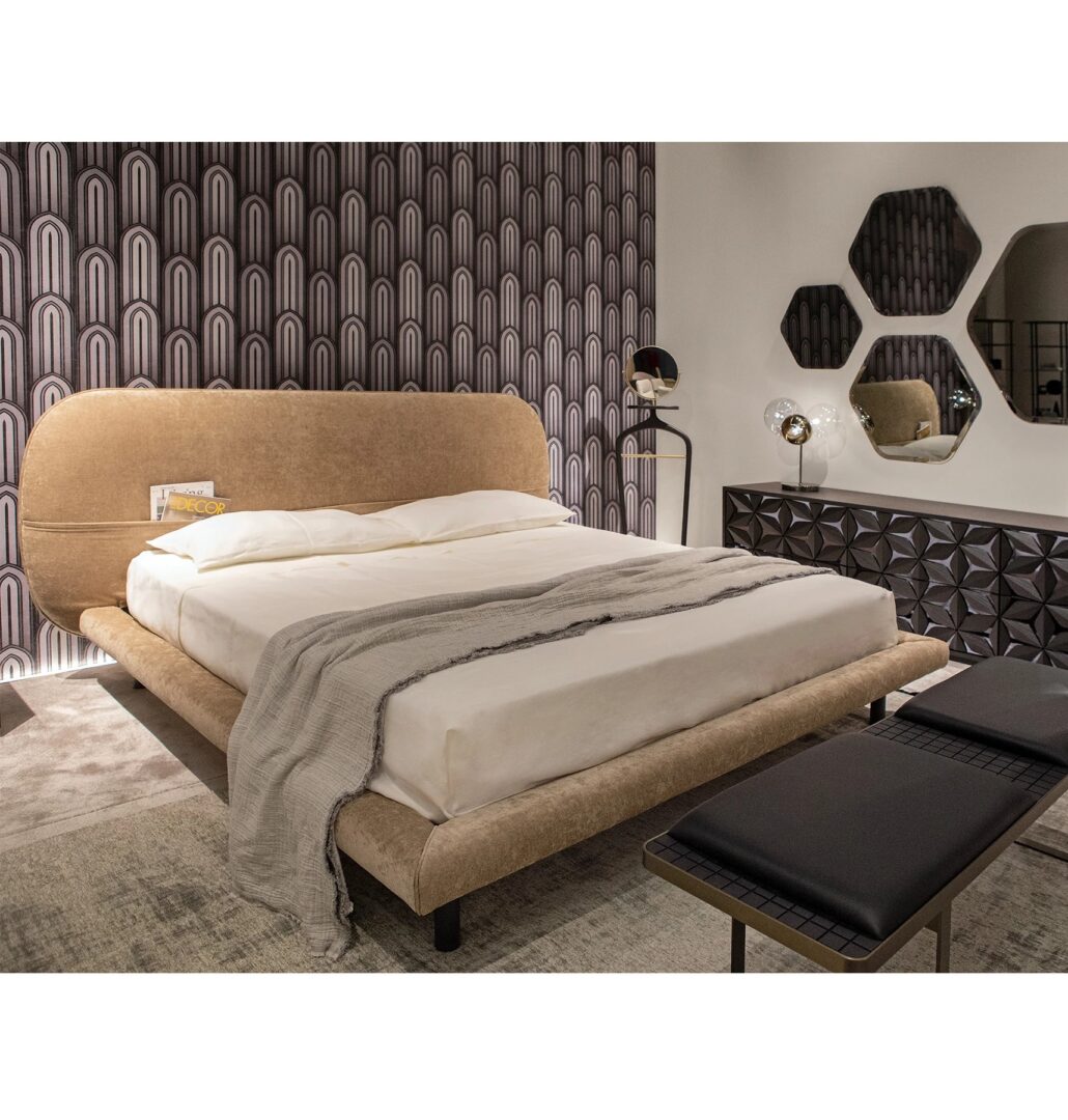 Кровать Dan приветствует своим мягким дизайном, выполненным из щедрых линий и округлых форм. Кривизна изголовья с характерной выпуклой формой делает его пышным и уютным. Дэн характеризует ночное пространство с обволакивающей и изысканной атмосферой, создавая оазис уютного отдыха с абсолютной элегантностью. Дэн доступен в различных отделках эксклюзивных тканей, бархата или кожи.
