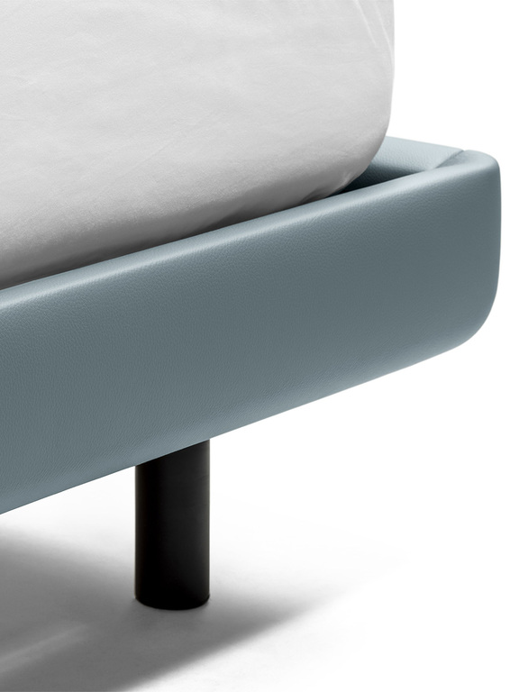 Основная конструкция кровати Ferdinandea выполнена из еловых ламелей, а изножье — из тополиной фанеры. С четырех сторон кровать покрыта мягким слоем пенополиуретана. Покрытие дополнено обивкой Pelle Frau® и изящной строчкой в тон. Кровать Ferdinandea доступна в двух вариантах высоты, с ножками 13 или 24 см. Модель длиной 13 см может быть изготовлена по индивидуальному заказу с различными силуэтами ножек и материалами: цилиндрическая, в классическом исполнении из алюминия, окрашенного в черный цвет, или обитая кожей, из стали с покрытием под бронзу, или из массива ясеня, окрашенного в цвет мокко. С другой стороны, версия диаметром 24 см изготавливается со стандартными цилиндрическими ножками из алюминия, окрашенного в черный цвет. В стоимость кровати Ferdinandea входит спальное место Vespero, которое позволяет регулировать жесткость в нижней части спины и обладает высокой впитывающей способностью в области плеч.