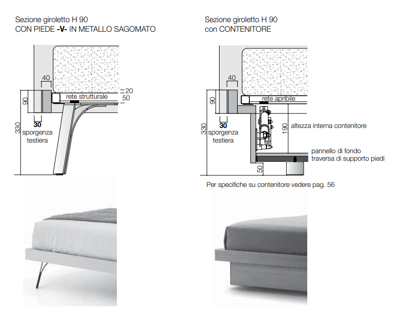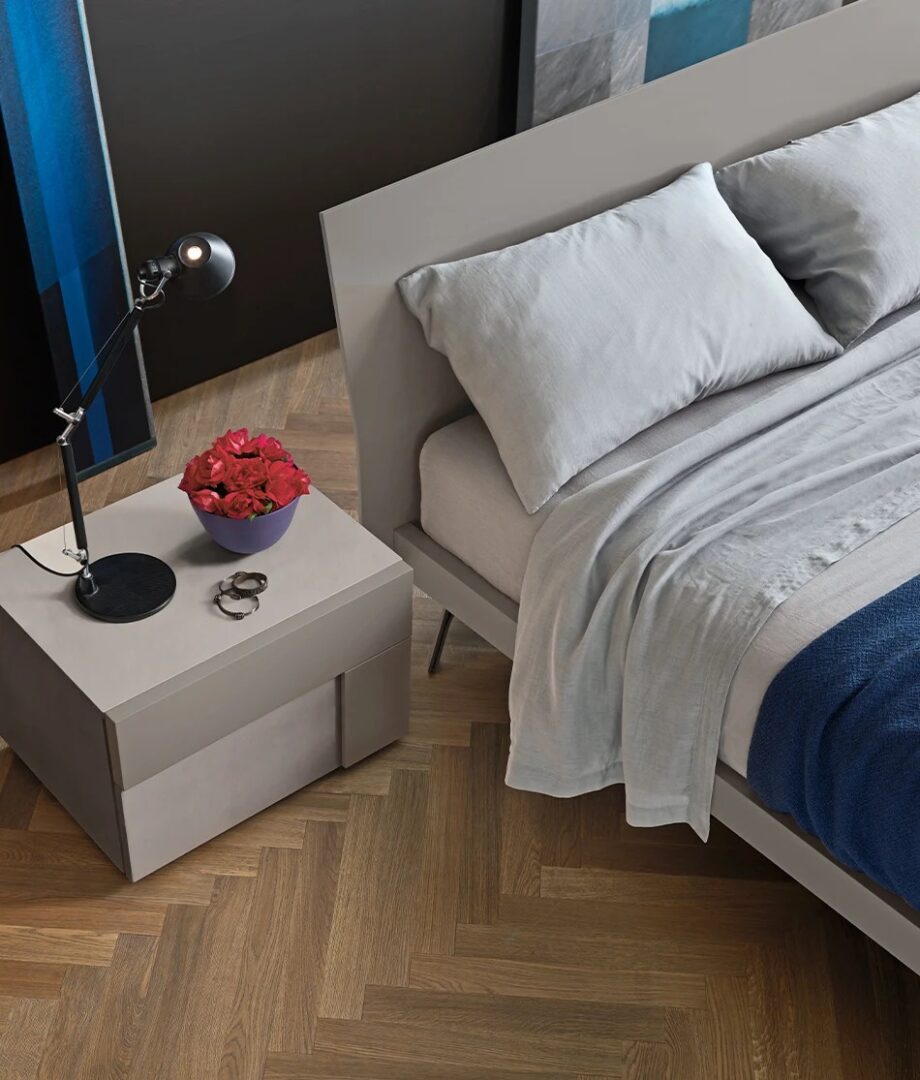 Простая в своей функциональности Folio Grafic имеет каркас кровати с лакированной отделкой или покрытый техническими материалами. Он компактен и прочен по толщине, что приятно контрастирует с тонким и гармоничным изголовьем. Металлические ножки добавляют дополнительный элемент прочности и достоинства при изготовлении. Также доступен в версии с контейнером, отступающим от плоскости кровати.