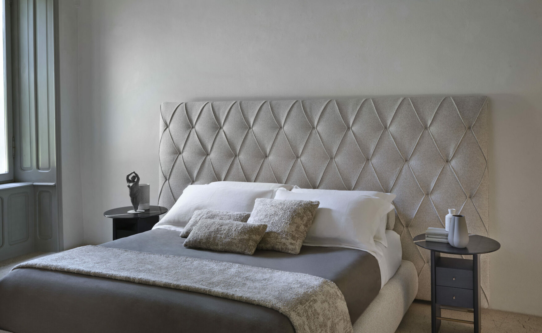 Кровать IVONNE ROYAL имеет важное изголовье в изысканном стиле капитоне, что делает ее одной из самых элегантных в линейке. Модель IVONNE также доступна в варианте с более узким бортиком для небольших помещений.