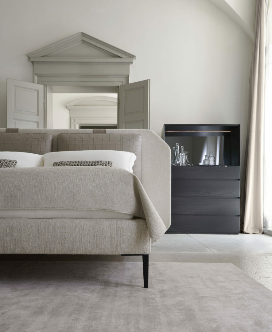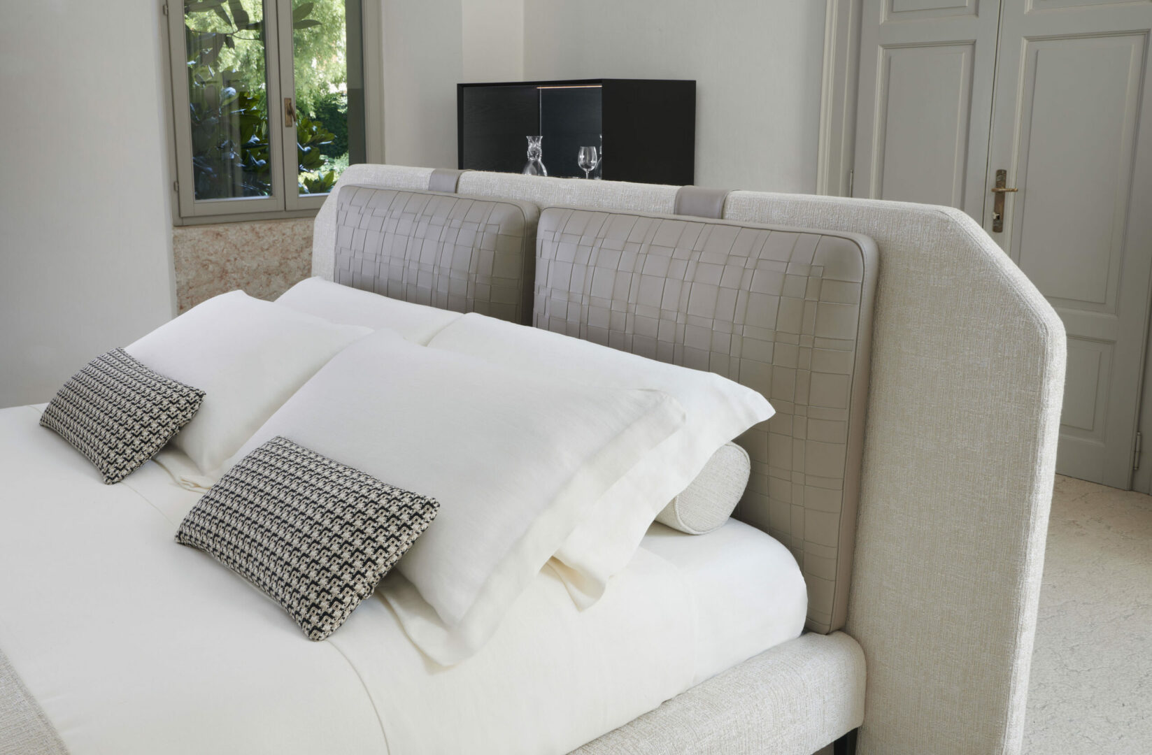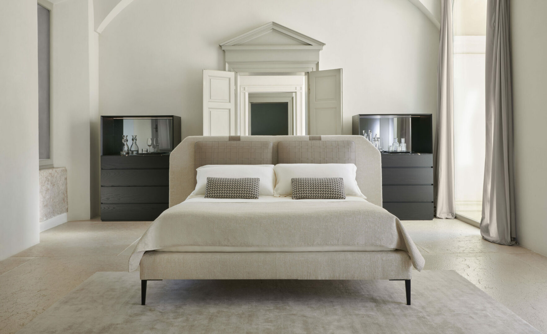 Кровать KARL, спроектированная архитектором Джо Гарцоне (Joe Garzone), — это кровать, которая становится главным героем в любой обстановке. Изысканное плетение, нанесенное на передние подушки для плеч, является максимальным проявлением итальянской ручной работы.