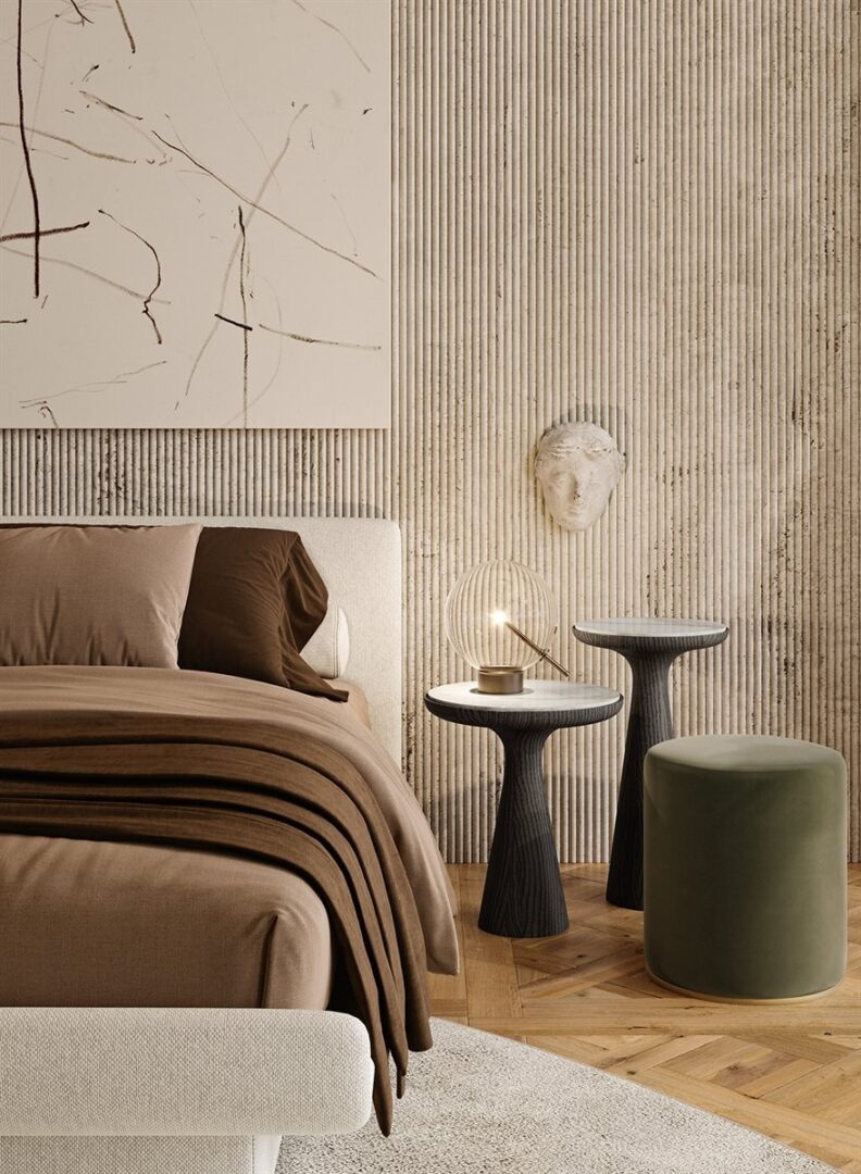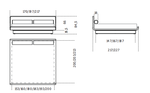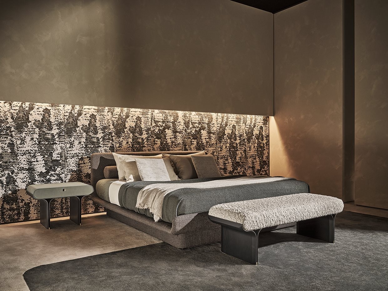 Кровать из недеформируемого пенополиуретана различной плотности и полиэфирного волокна с внутренней деревянной структурой. Доступен со съемным покрытием из ткани или кожи в цветах образца. В комплект входит решетчатая сетка. Для изготовления элементов с кожаной обивкой необходимы дополнительные швы по сравнению с элементами с тканевой обивкой.