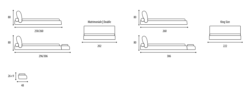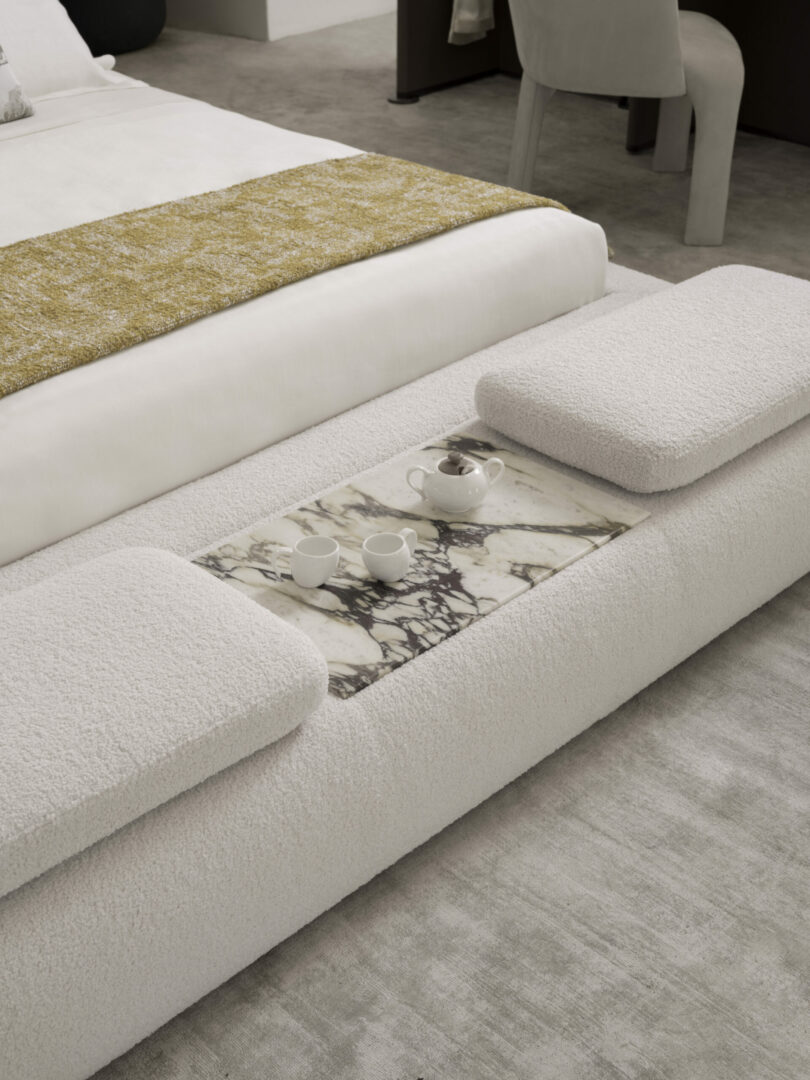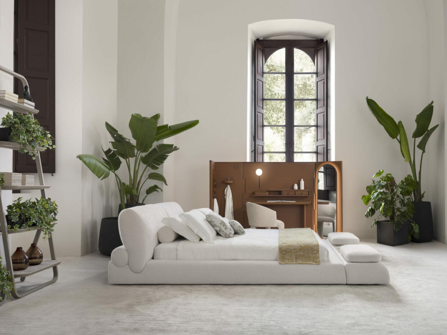 Кровать Mou отличается своими широкими пропорциями, что делает ее внушительным и в то же время чрезвычайно удобным местом в спальне.