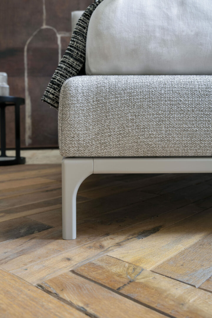 Кровать MOZART имеет удобное изголовье с мягкой обивкой, выполненное в элегантном стиле капитоне. Изголовье кровати выполнено в элегантном стиле капитоне, что делает ее универсальной для любого помещения. Кровать доступна как в варианте каркасной кровати, так и в варианте с металлическими ножками или ножками из цельного дерева.