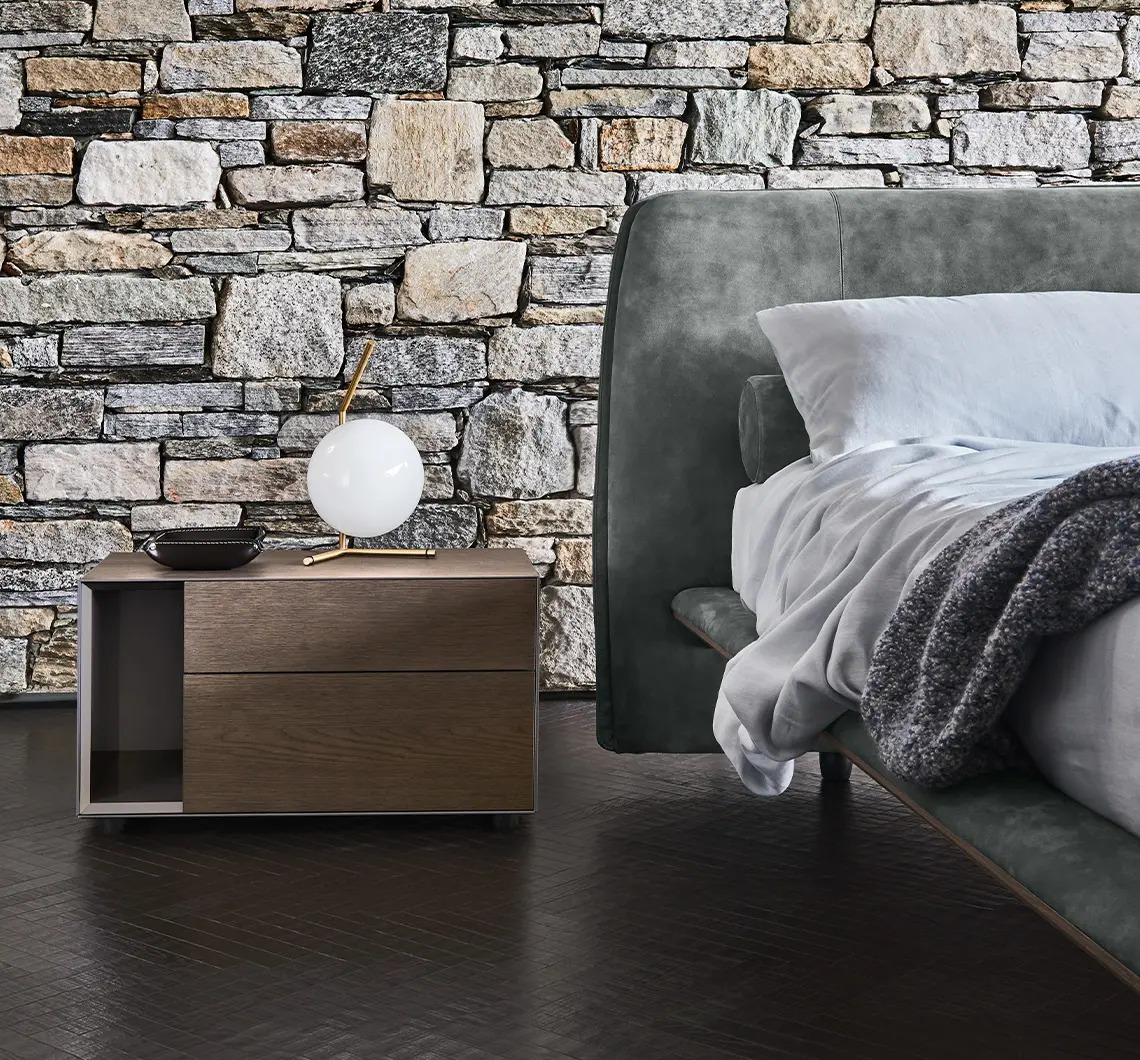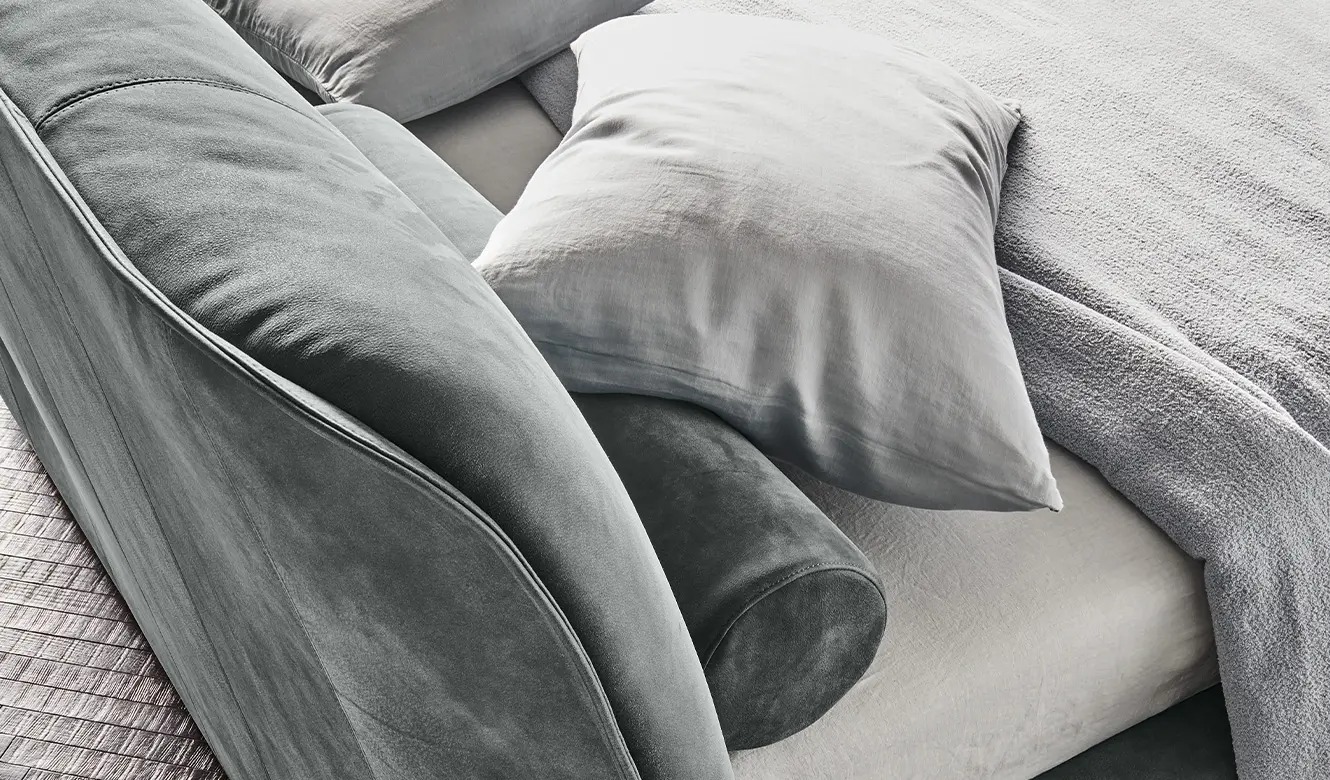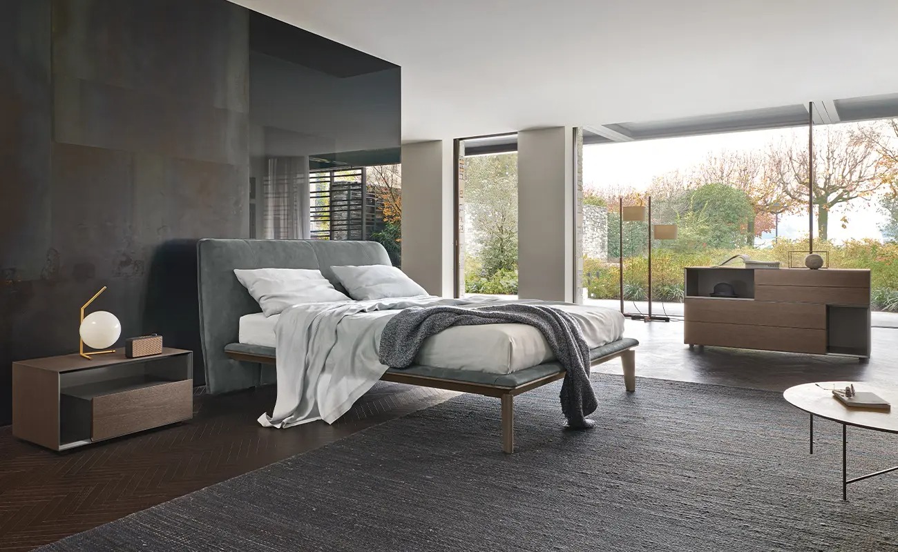 Гармоничное сочетание различных отделок является главной особенностью этой кровати.