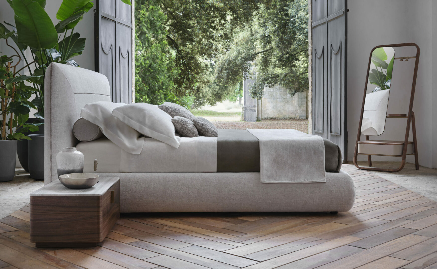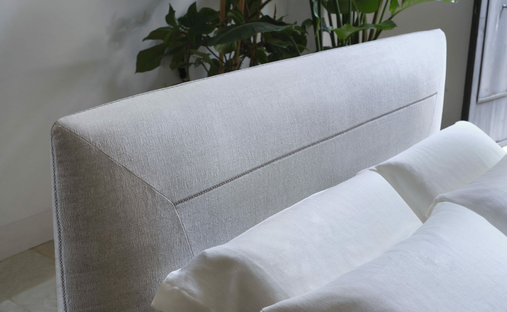 RANIA — это кровать с мягким изголовьем, которая отличается удобным внешним видом и неформальным стилем. Изголовье отличается контрастной прострочкой и небольшим размером. Кровать доступна в варианте с каркасом-контейнером или с каркасом кровати с металлическими ножками или ножками из массива дерева.