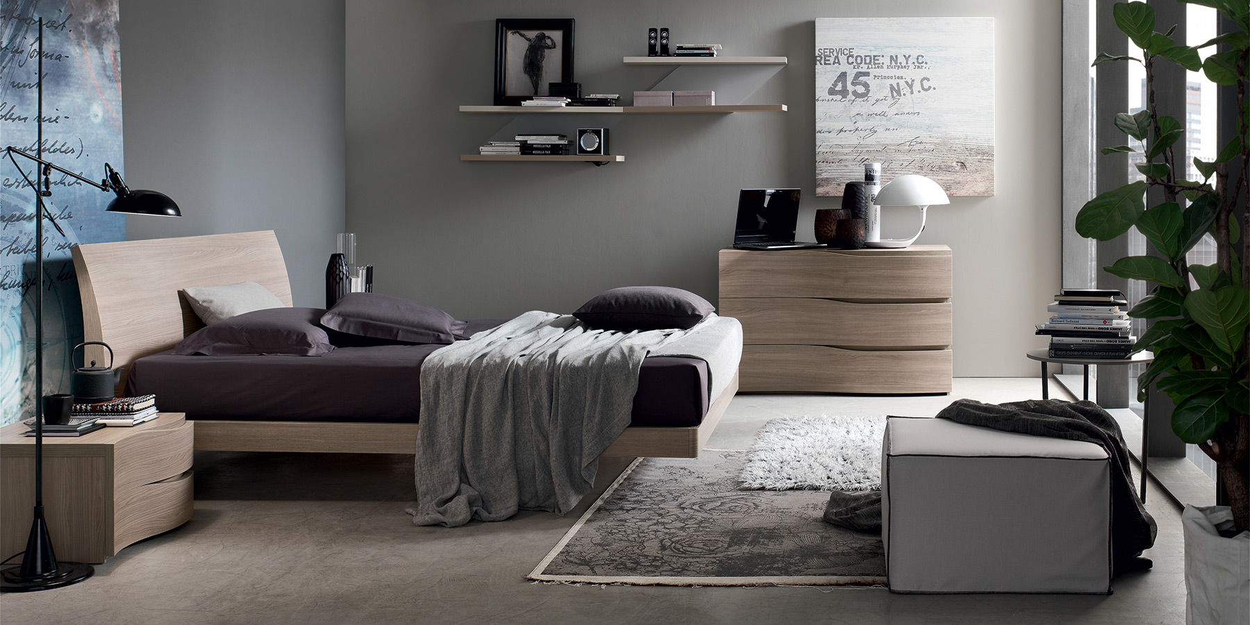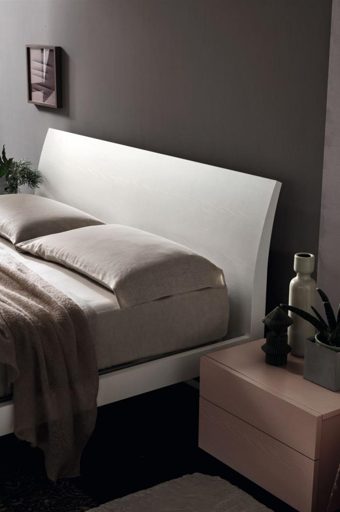 Форма кровати сужается кверху, превращая ее в изгиб.