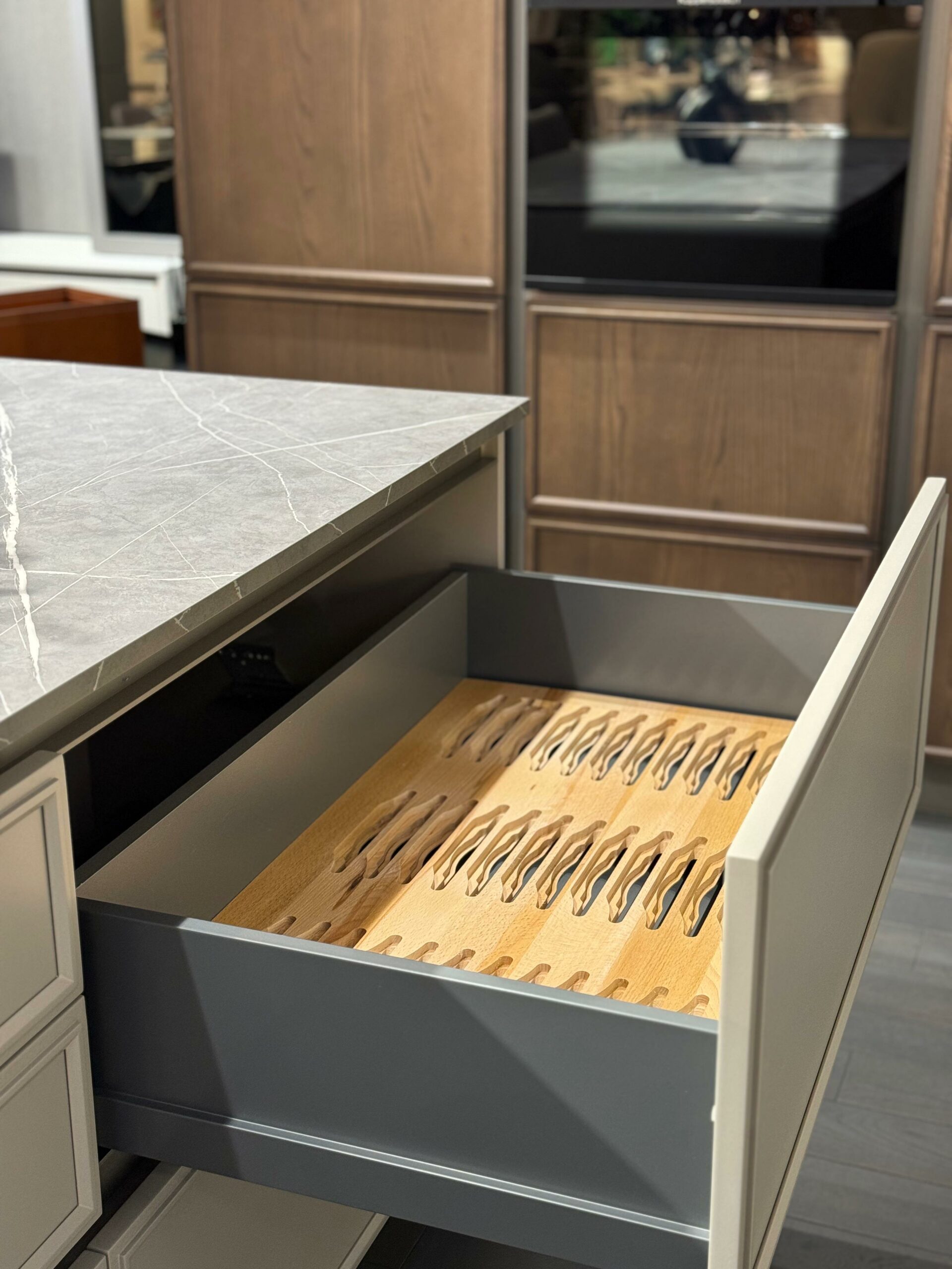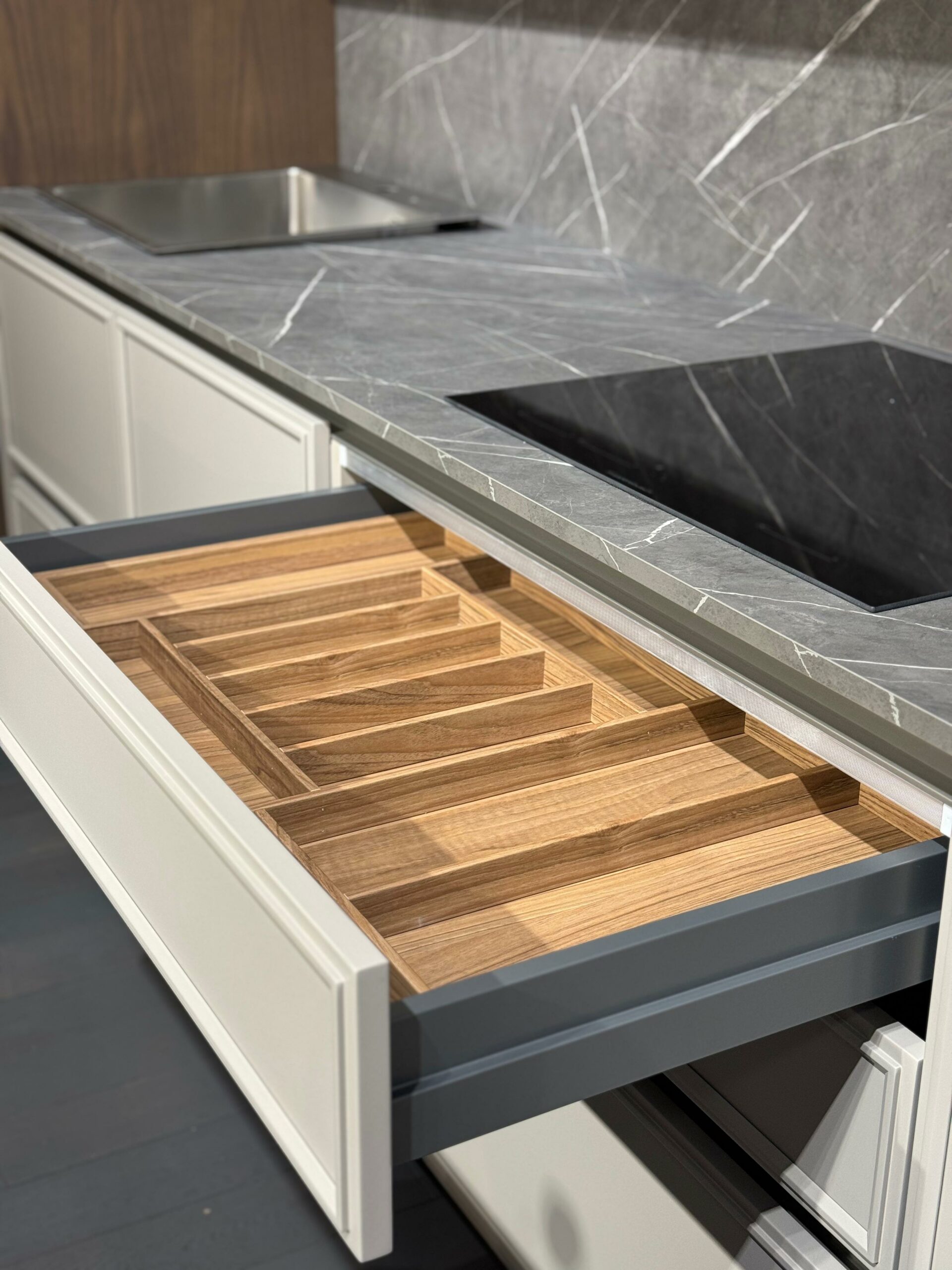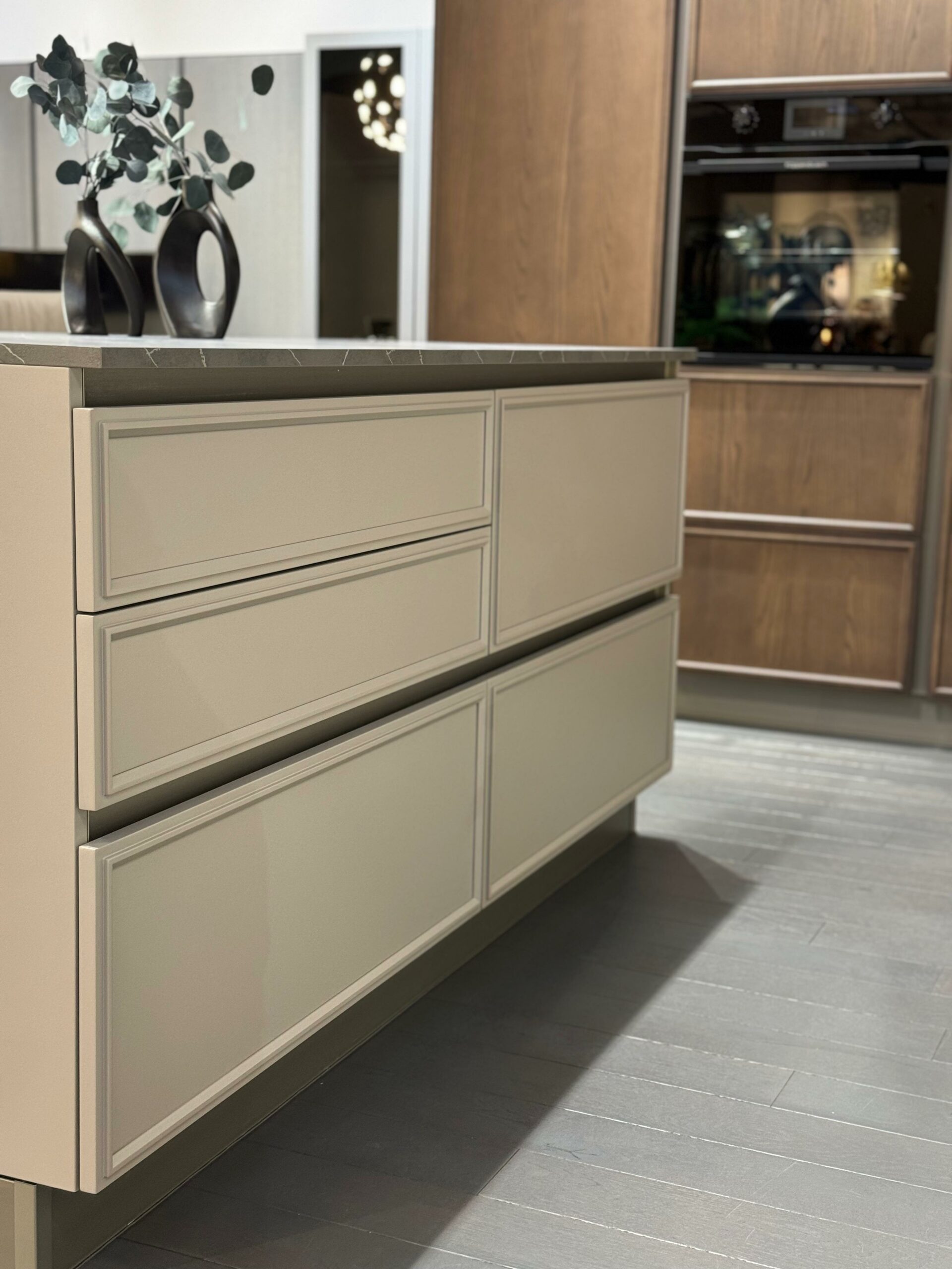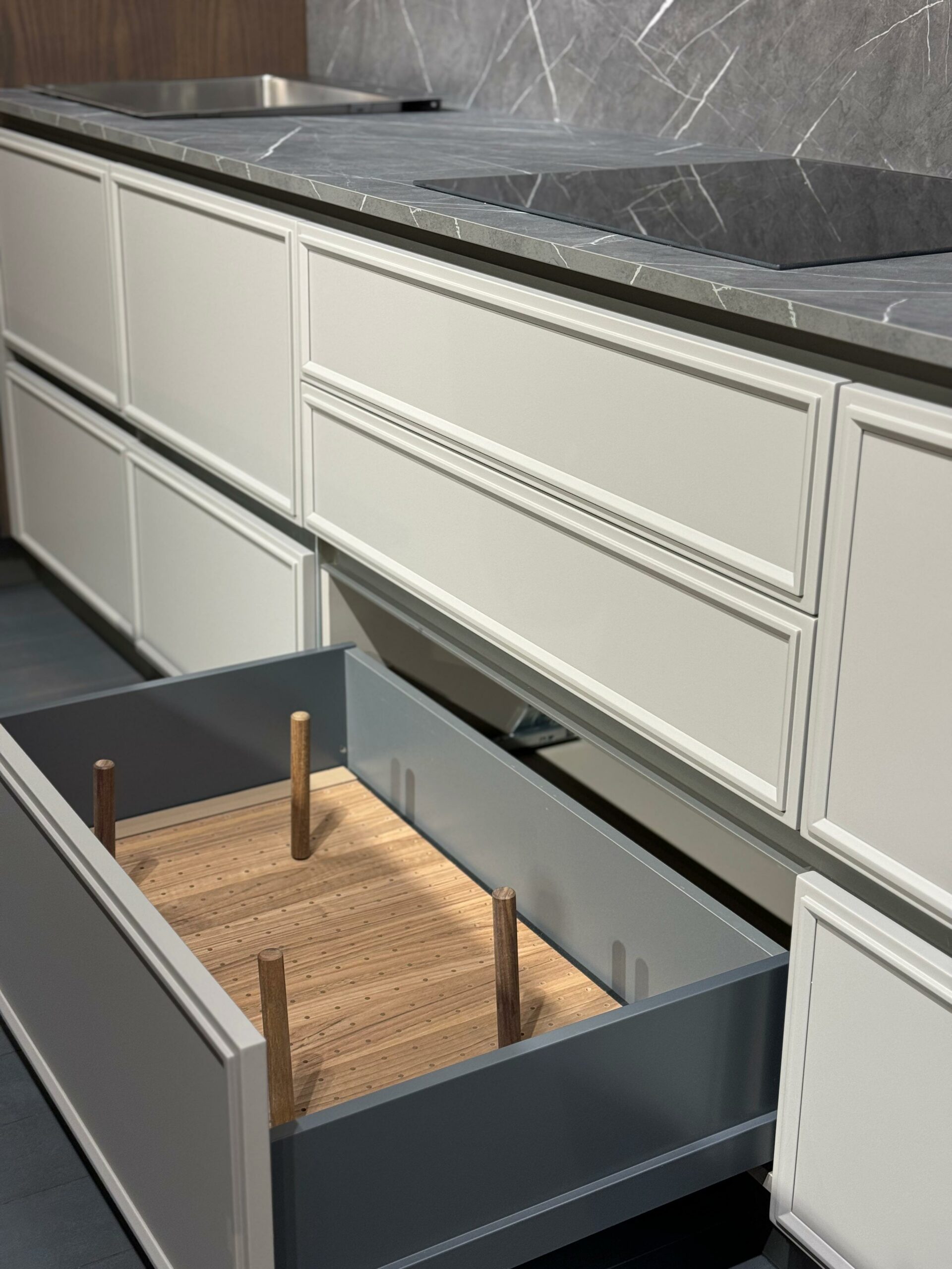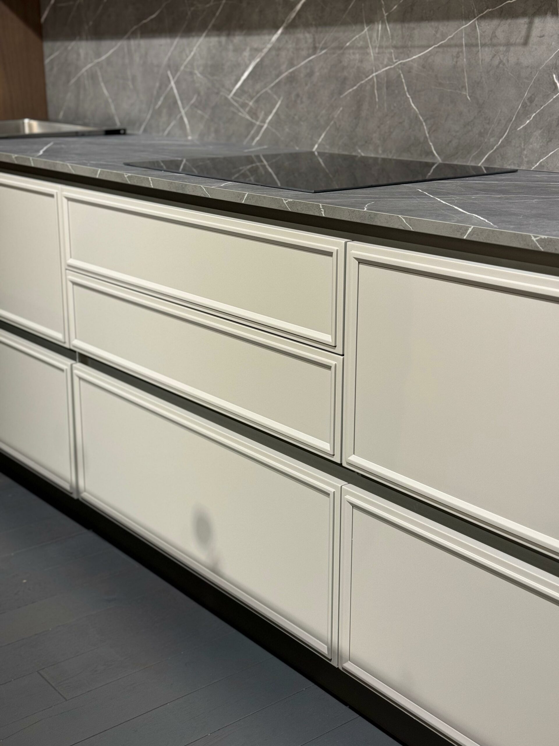 Фасады коллекции украшены тонкой филенкой, идеально подходят для современных интерьеров с элементами современной классики.
