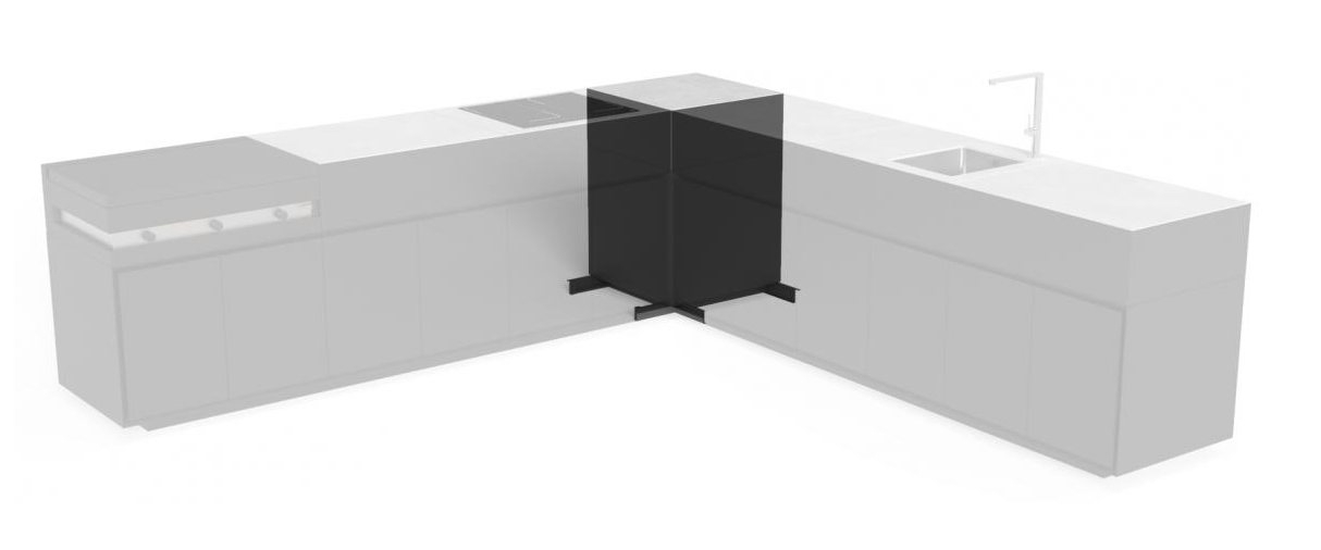 Угловое основание можно использовать в качестве соединителя между основаниями с 3 модулями или основаниями с 2 модулями. Угловое основание не подходит для установки на полуострове или в закусочной.