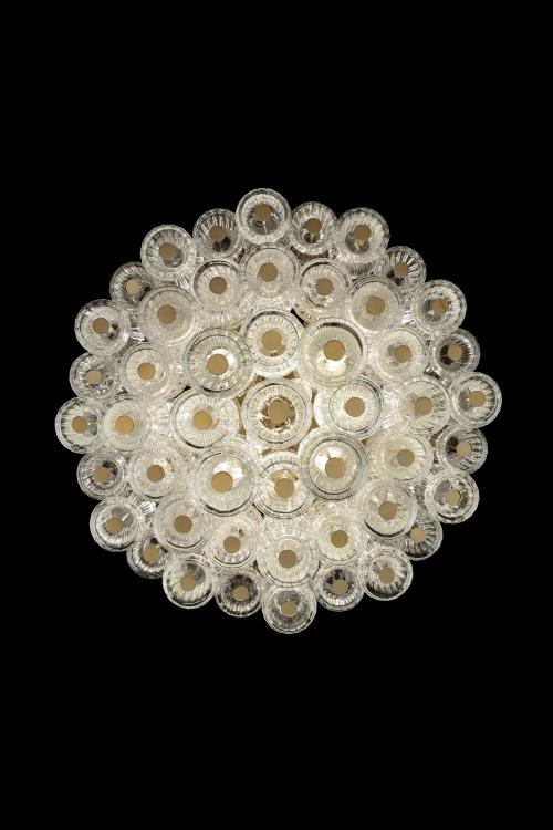 Техника Ригадин и ручное выдувание стекла в форме «фракко» придают изделию уникальную текстуру с тонкими ребрами, которые преломляют свет, создавая эффект мерцания. Итальянское качество и внимание к деталям делают этот светильник настоящим произведением искусства для интерьеров премиум-класса.