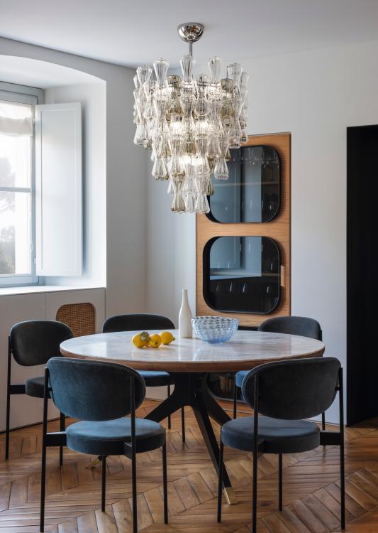 Симметрия и порядок создают очень элегантные подвесные светильники, обладающие магическим очарованием. Это насыщенные, яркие композиции, созданные путем комбинирования отдельных элементов, которые восходят к дизайну 1960-х годов, хранящемуся в исторических архивах Barovier&Toso. Песочные часы с изогнутыми формами, идеально сочетающимися друг с другом, изготовлены в старинной технике Ригадин. Стекло выдувается в форме, известной как “фракко”, что создает тонкие ребра по всей поверхности изделия. Благодаря этим линиям каждая подвесная лампа вызывает танец светящихся отблесков.