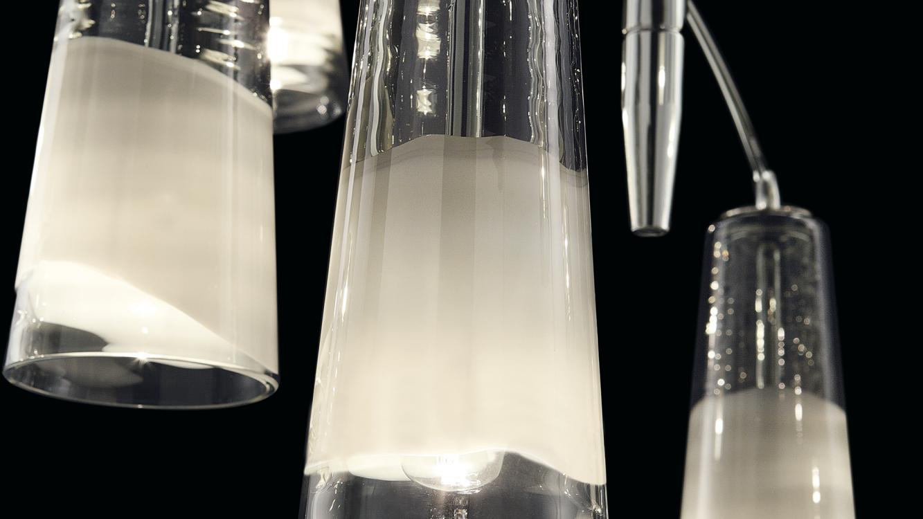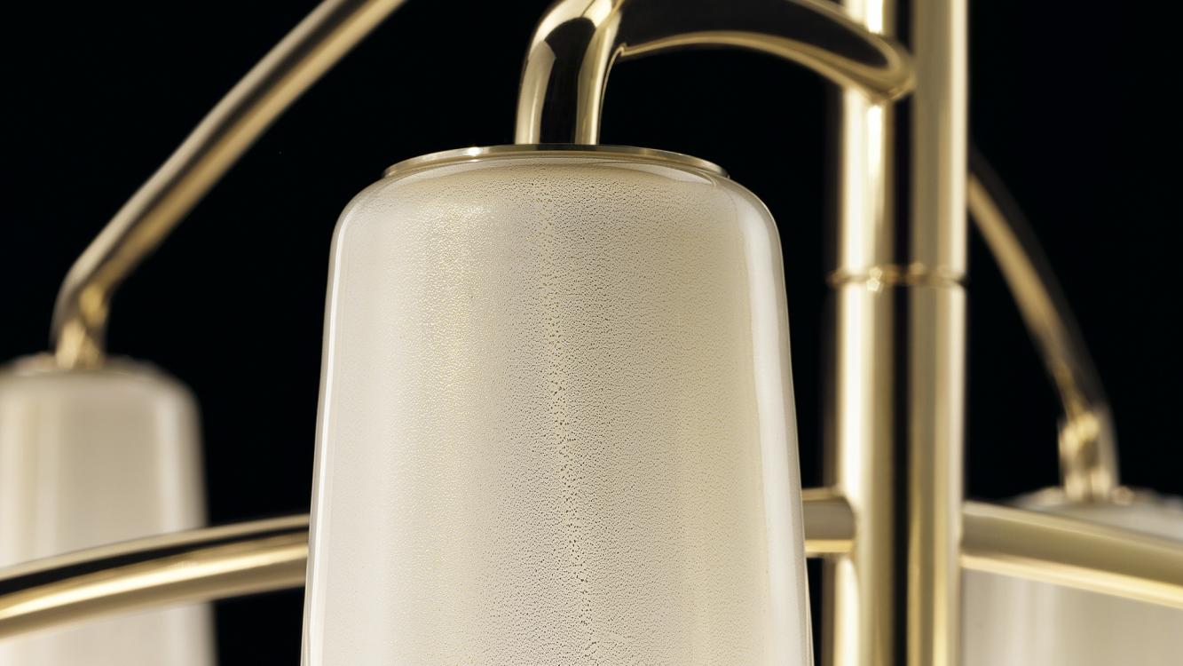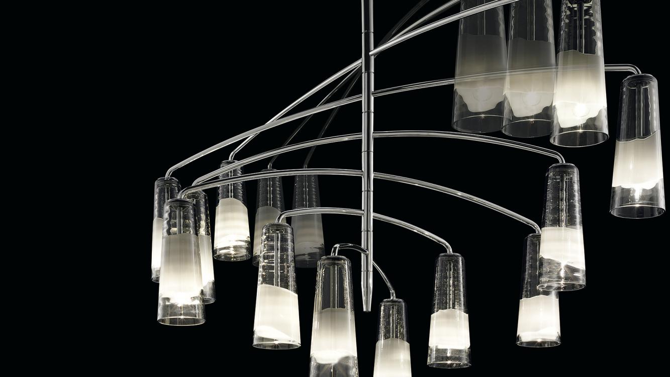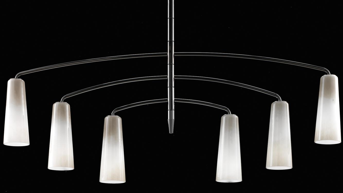 Светильник сочетает в себе традиционное венецианское мастерство и современные технологии. Доступен в девяти базовых моделях с возможностью индивидуальных комбинаций, что делает его идеальным решением для премиальных интерьеров.