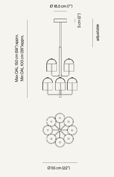 Подвесные элементы и спокойная геометрия подчеркивают присутствие люстры Doma. Легкая и в то же время прочная, она создает завораживающую игру цветных бликов благодаря восьми плафонам в форме колоколов из муранского стекла, которые поддерживаются металлическими трубчатыми кронштейнами. Благодаря изысканному дизайну и непрямому освещению она придает элегантность интерьеру. Коллекция Doma также доступна в напольном, настольном, настенном и подвесном исполнении с различными вариантами отделки.