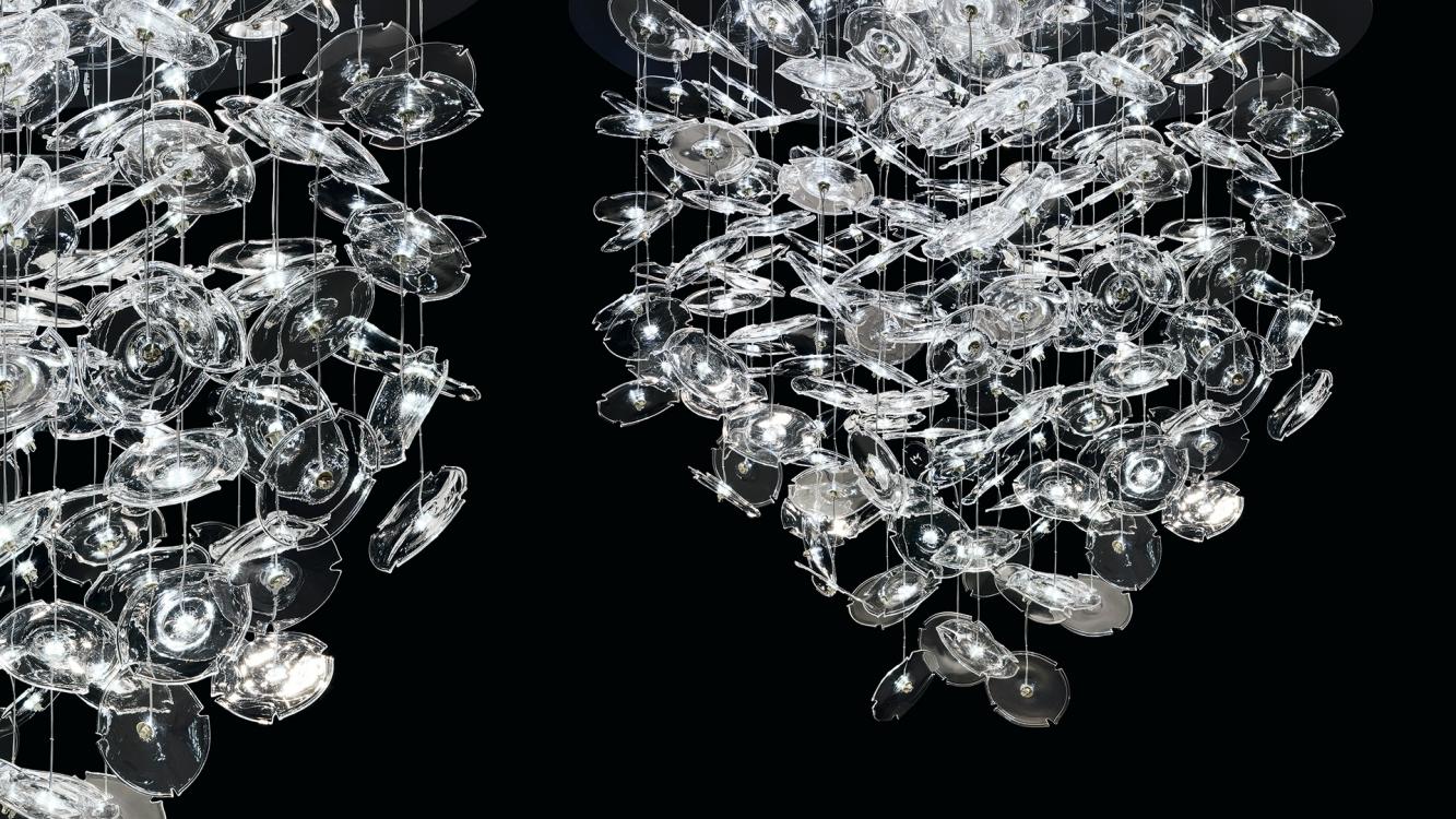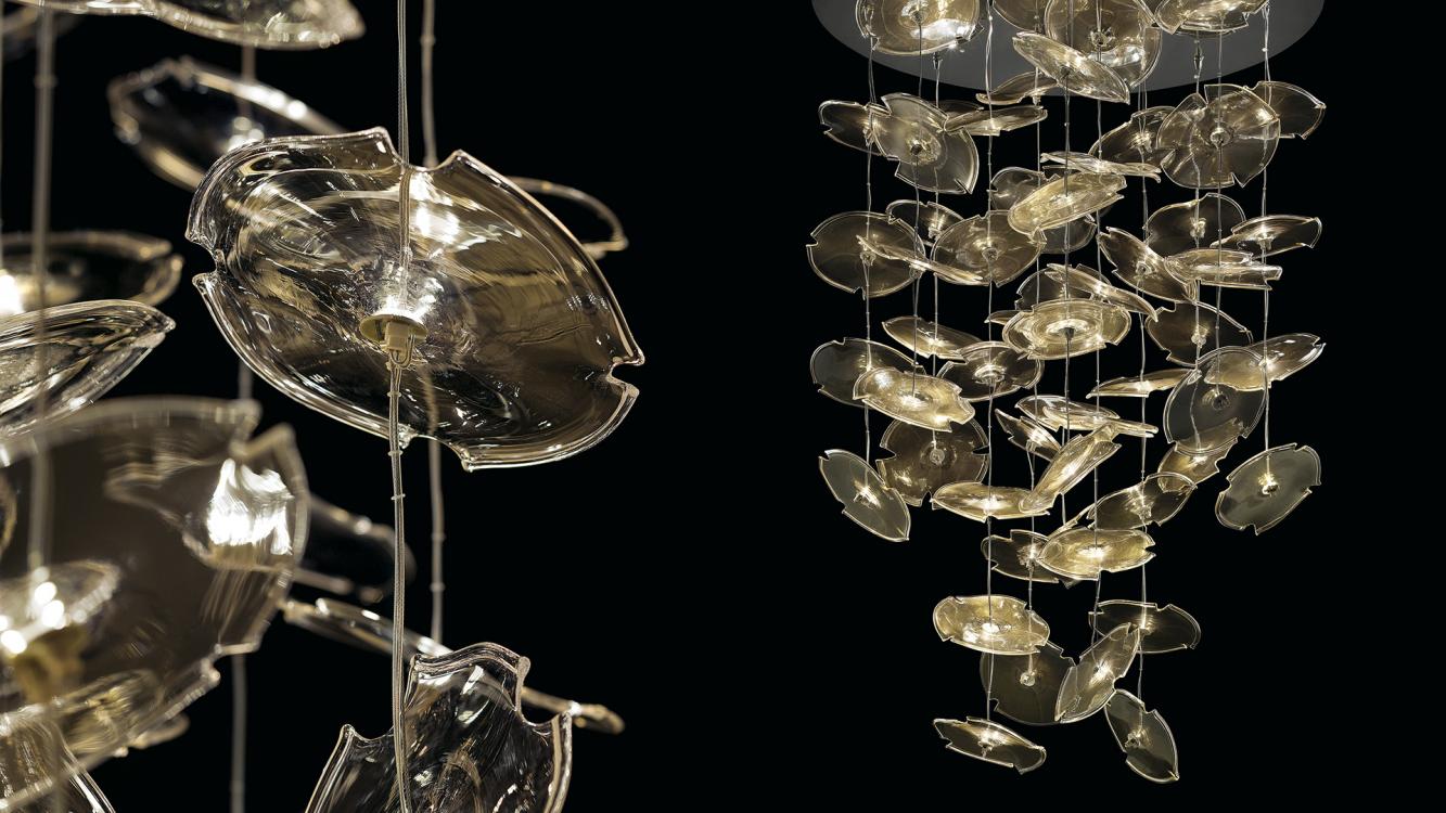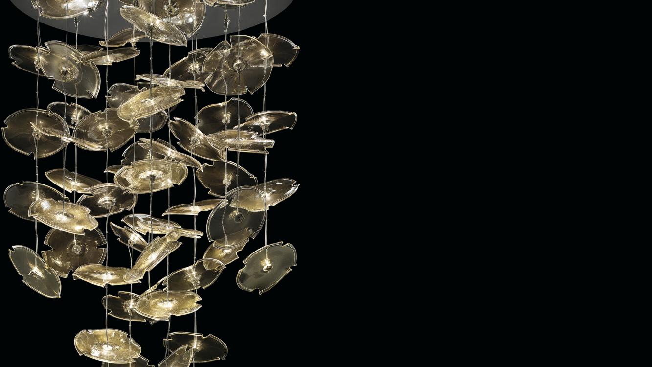 Вдохновленный природной эстетикой, светильник Exagon напоминает прозрачные лепестки лотоса, парящие в воздухе. Его стеклянные элементы украшены тончайшими золотыми вкраплениями, создающими эффект мерцания. Дизайн сочетает в себе: