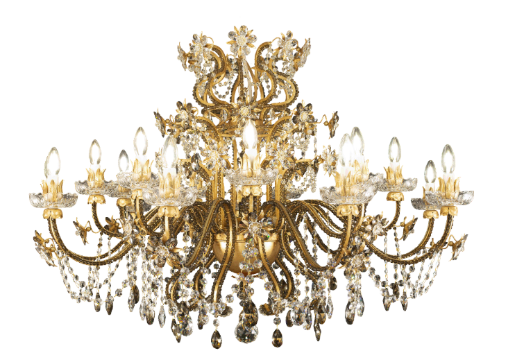 люстра из кованого железа с прозрачным и цветным богемским хрусталем, муранским стеклом и прозрачной жемчужной окантовкой