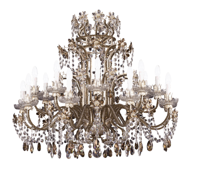 Люстра имеет высоту 90 см и ширину 120 см; вес 45 кг (99 фунтов). В комплекте 18 лампочек; патроны E14 или E12, мощность каждой — не более 40 Вт.