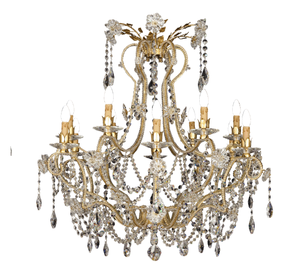 Высота люстры — 100 см, диаметр — Ø 100 см; вес — 16 кг (35,2 фунта). Лампочки: 12 шт., тип E14 или E12, мощность не более 40 Вт.