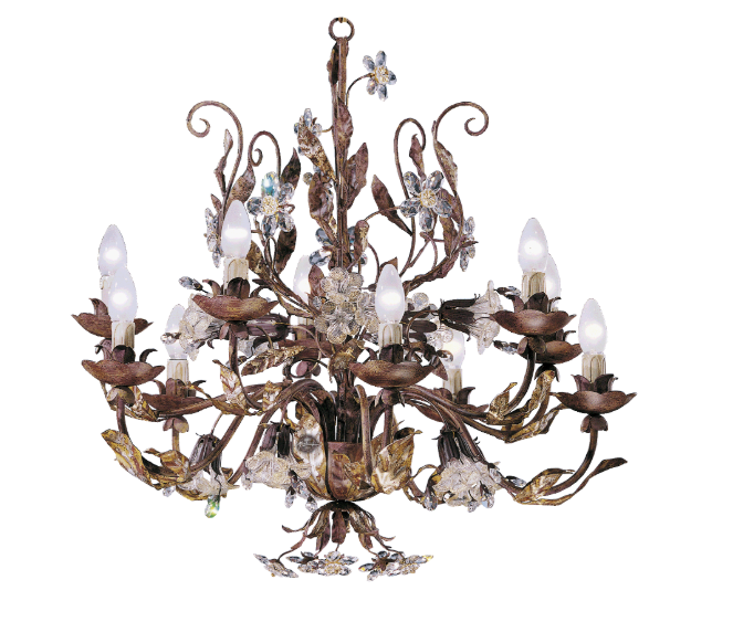 Люстра из кованого железа с прозрачным богемским хрусталем и муранским стеклом на 10 лампочек