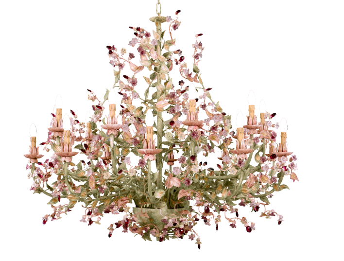 люстра из кованого железа с прозрачным и цветным богемским хрусталем и муранским стеклом