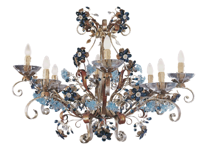 люстра из кованого железа с цветным богемским хрусталем и муранским стеклом