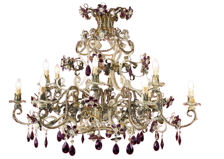 люстра из кованого железа с прозрачным и цветным богемским хрусталем, муранским стеклом, прозрачной и переливающейся жемчужной окантовкой