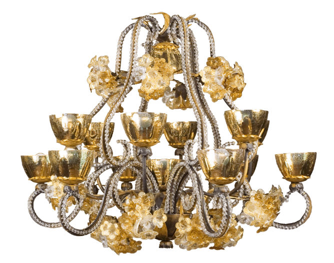 люстра из кованого железа с богемским хрусталем, муранским стеклом и прозрачной жемчужной окантовкой
