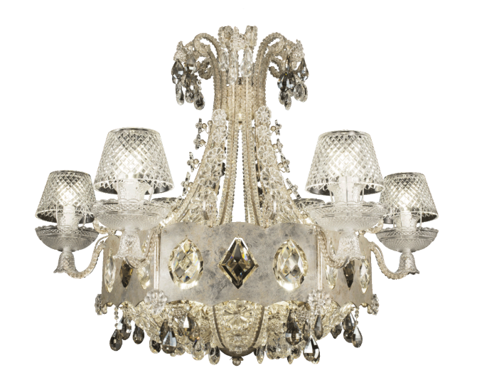 Люстра имеет высоту 75 см, ширину 100 см; вес указан как 25–55 фунтов.