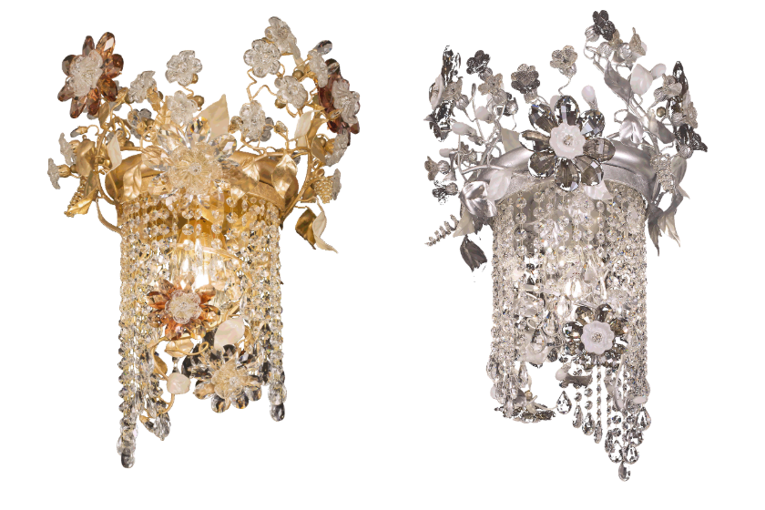 люстра из кованого железа с отделкой из прозрачного и колерованного стекла богемский хрусталь, бисквитная керамика, муранское стекло