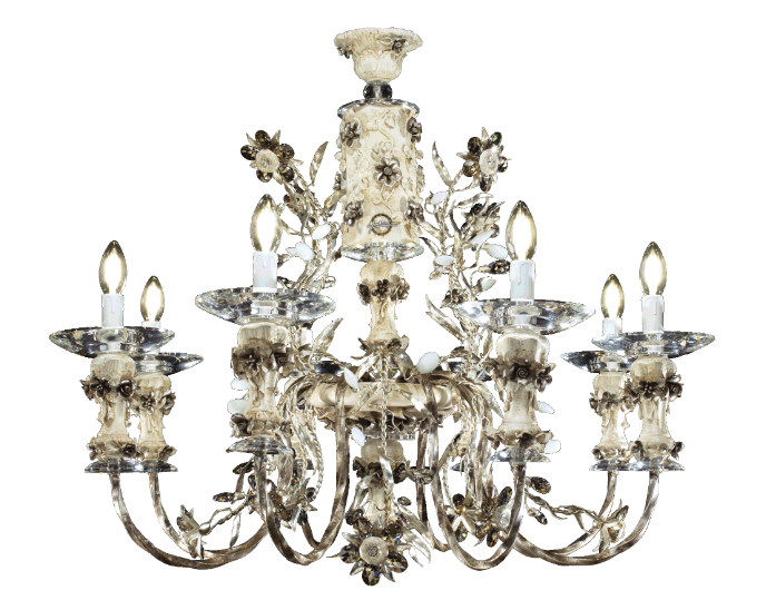 Люстра: высота 75 см, ширина 90 см; вес 17 кг (37,4 фунтов). Рассчитана на 10 лампочек с цоколем E14 или E12, мощность каждой не более 40 Вт.