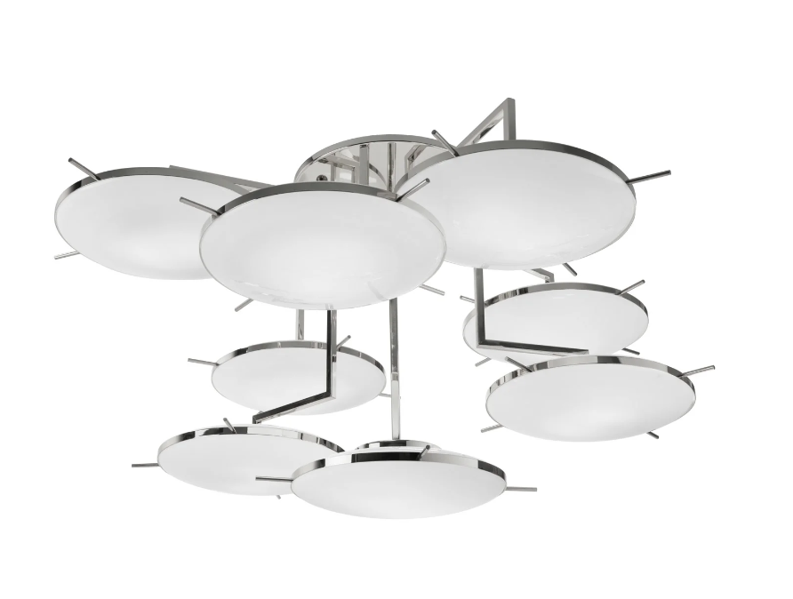 Эта потрясающая люстра Venusia переосмысливает гламур ар-деко в современной и драматичной манере. Venusia получила свое название от серии мультфильмов, очень популярных в 80-х годах, поскольку ее дизайн вдохновлен НЛО, но в то же время напоминает геометрию элементов, которые возвращают нас к дизайнерским районам Майами в стиле деко, разработанным в 1920/30-х годах.Хромированная латунная конструкция имеет 8 кронштейнов, расположенных на разной высоте, которые служат креплением для плафонов из выдувного муранского стекла, создавая элегантное ощущение движения. Каждое крепление украшено четырьмя шипами, придающими ему привлекательный акцент.