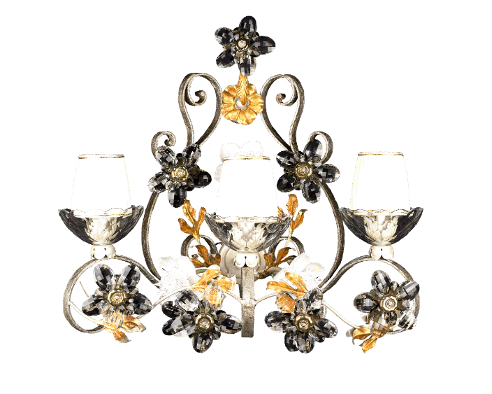 3 лампы настенный светильник из кованого железа с прозрачными и цветными абажурами из богемского хрусталя, фарфора и шелка