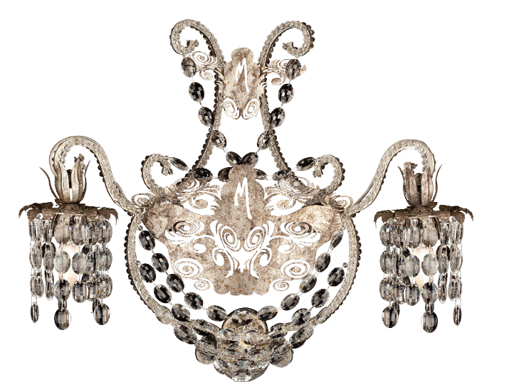 Настенный светильник на 2 лампы из кованого железа с прозрачным чешским хрусталем и перламутровой окантовкой