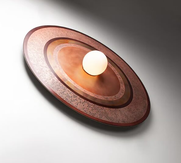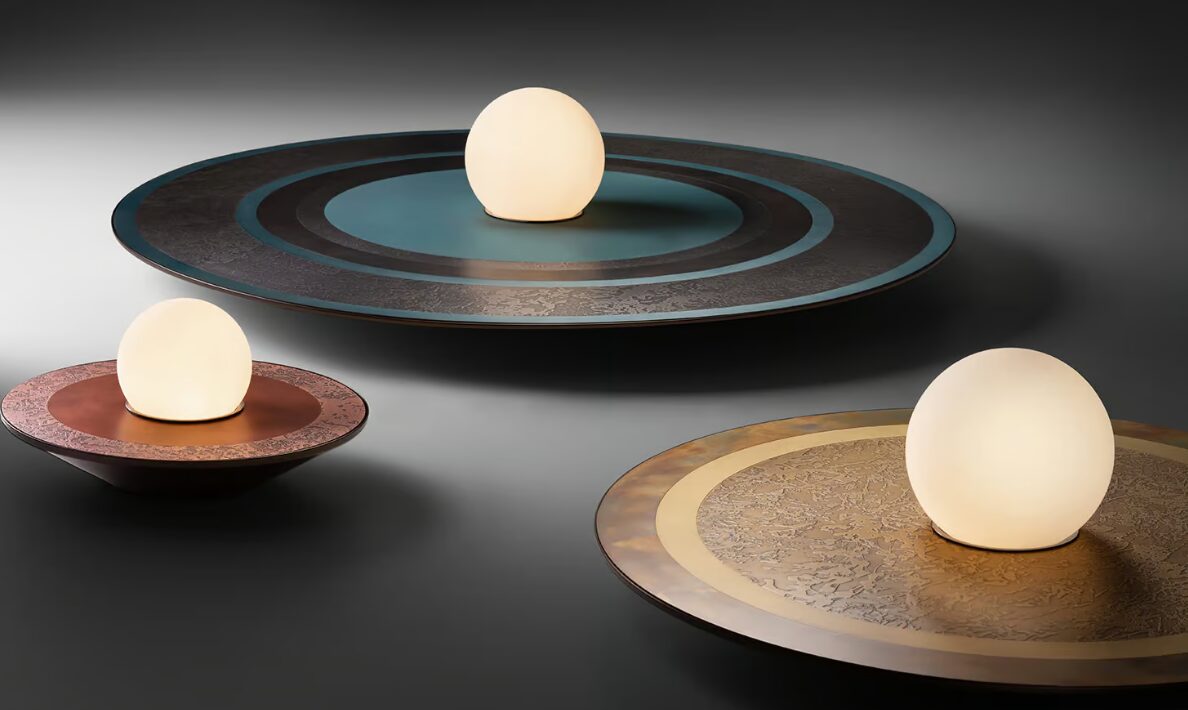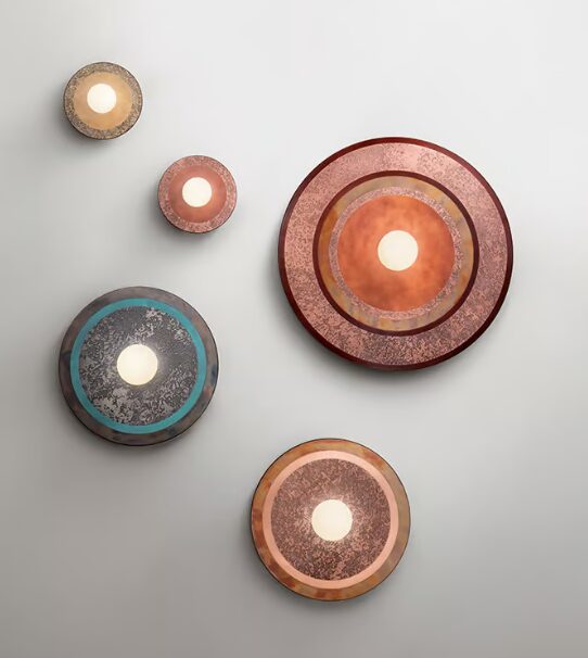 В коллекции Caleide гармонично вплетены свет и металл. Каждая лампа приобретает форму благодаря уникальным геометрическим композициямСталь, латунь и медь чередуются в оксидированной и матовой отделке, обогащенной игрой форм, которые возвышают тонкий круглый металлический лист