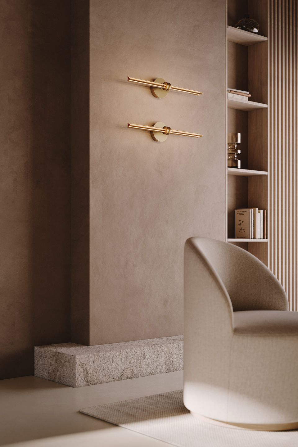 Стеклянная трехгранка Optical Wall сочетает в себе элегантность и линейность. Ее конструкция из натуральной или темной полированной латуни поддерживает трехгранник из янтарного, дымчато-серого или хрустального стекла, который можно регулировать по горизонтали или вертикали. Источник света проходит через стеклянный рассеиватель, излучая мягкий свет по всему окружающему пространству. Коллекция Optical также доступна в напольном, настольном, подвесном исполнении с одним или тремя элементами, а также в напольно-подвесном исполнении.