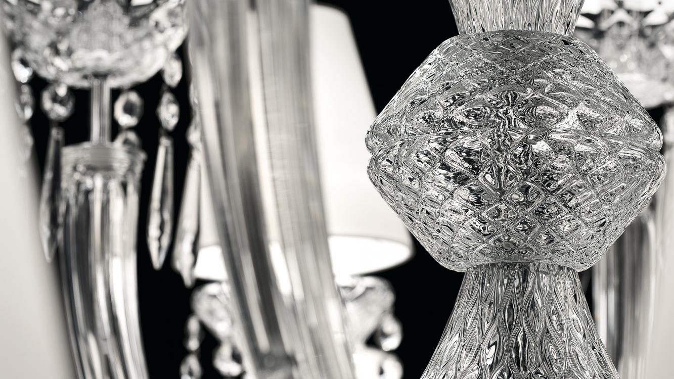В основе лампы — высококачественный муранский хрусталь, известный своей прозрачностью и игрой света. Каждый элемент выдувается и обрабатывается вручную мастерами фабрики Barovier&Toso, что гарантирует уникальность изделия. Металлические детали выполнены из позолоченной или патинированной бронзы, подчеркивая статусность лампы.