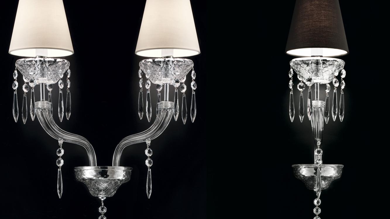 Культовый дизайн с точёными призмами, сверкающими подвесками и декорированными чашечками создаёт уникальный световой эффект. Венецианский хрусталь раскрывает своё скульптурное великолепие, превращая бра в изысканный элемент интерьера.