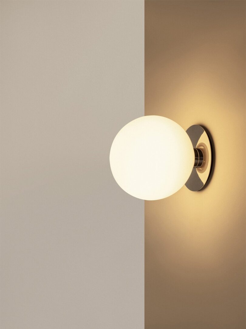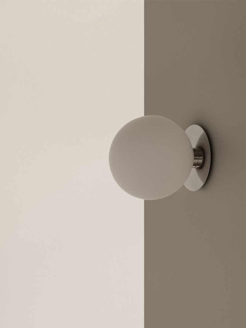 Лаконичный настенный светильник TR Bulb легко крепится к стене или потолку с помощью скрытых винтов, обеспечивая освещение там, где это необходимо. Светодиодная лампа с регулируемой яркостью скрыта в элегантном плафоне из опалового стекла, который действует как рассеиватель, излучая ровное, без бликов свечение. Предлагаемые с креплениями из стали с порошковым покрытием, матовой латуни или зеркально отполированной стали, они придают помещению изысканность и атмосферу.