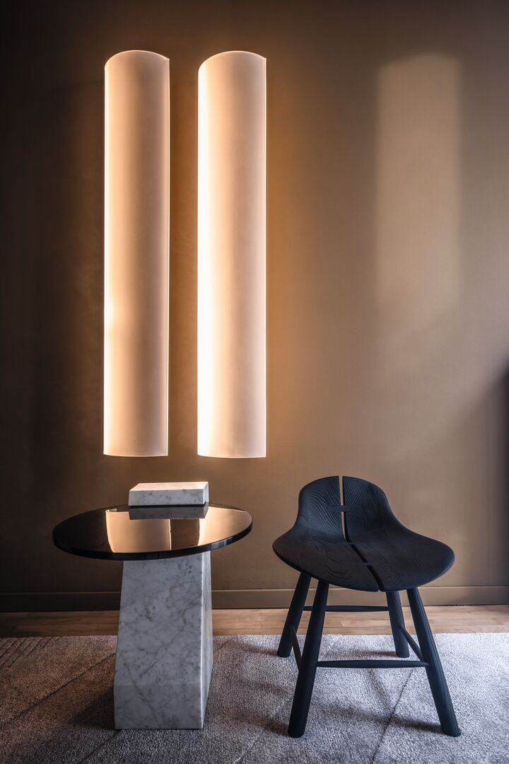 Изысканная коллекция светильников Tunnel, разработанная Федерико Пери для Baxter, интерпретирует освещение в гостеприимном дизайне и закругленных абажурах оригинальных и ярких расцветок. Светильники из гнутого метакрилата, предлагаемые в подвесном и настенном вариантах, отличаются плавной формой в виде перевернутой буквы U и наполняют пространство теплым уютным светом. Приглушенную элегантность дизайна эффектно дополняют детали из матовой сатинированной латуни, которые усиливают его грациозность. Подвесные светильники и бра Tunnel дарят многогранные эстетичные впечатления и идеально подходят для освещения просторных помещений, таких как обеденные залы, большие гостиные, офисы, холл отеля.