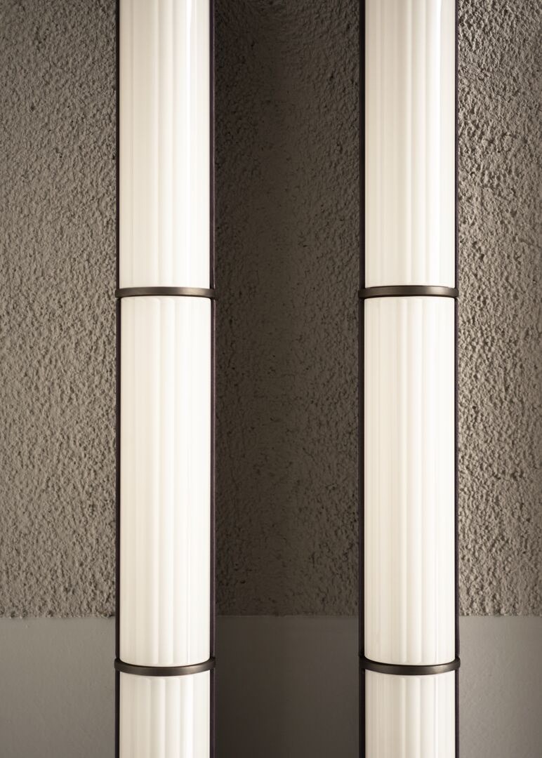 Дизайн светильников Wave вдохновлен характерной эстетикой тибетского моста: легкий, минималистичный и гармоничный одновременно. Федерико Пери создал для Baxter коллекцию светодиодных ламп трубчатой формы, настенных и напольных, которые, освещая пространство гостиной или кабинета, визуально делают его наполненным. Каждая лампа состоит из алюминиевой трубки, обтянутой кожей, с граненым рассеивателем из стекла и кожи, содержащим источник света. За счет высокого качества используемого стекла освещение светодиодными лампами получается нежным и приглушенным, как будто свет исходит от жемчужного ожерелья.