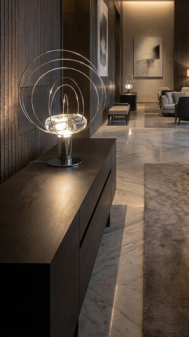 Настольная лампа из коллекции Esperia, которую в полной мере можно назвать настоящей современной световой скульптурой.