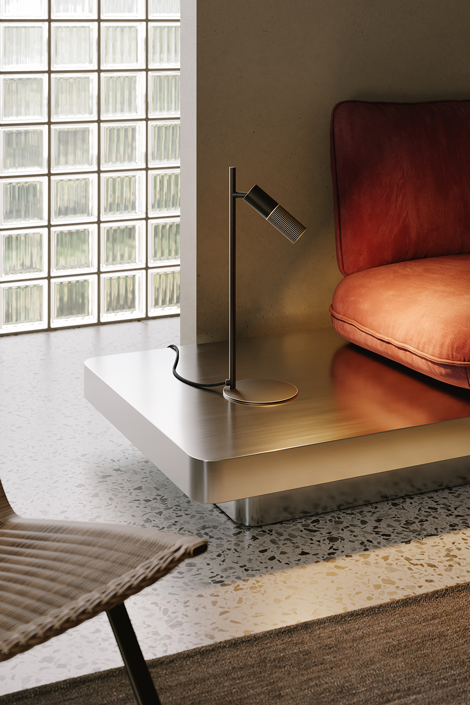 Регулируемый цилиндр Beak Table направляет и проецирует луч прямого света. Его гладкая отделка из полированной латуни подчеркнута рифлением на крышке, что придает визуальный ритм конструкции. Металлический стержень, выступающий из основания, поддерживает источник света в верхней части. Металлическая конструкция доступна как в светлом, так и в темном исполнении из полированной латуни. Beak также доступен в потолочном, настенном, напольном и подвесном исполнении.