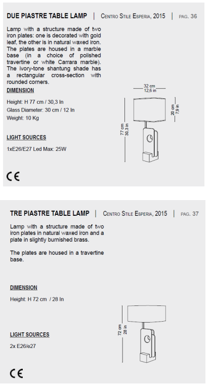 Итальянская настольная лампа Due e Tre Piastre от Esperia