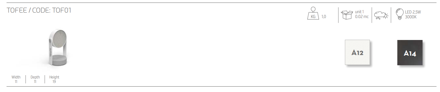 Маленькая лампа Kukà — самая маленькая лампа в коллекции. Это предмет мебели, изготовленный из экологически чистых материалов и отличающийся дизайном, который может быть подобран к любому стилю и обстановке. Метакрилатное основание перезаряжаемой лампы рассеивает свет и поддерживает круглый полимерный элемент.