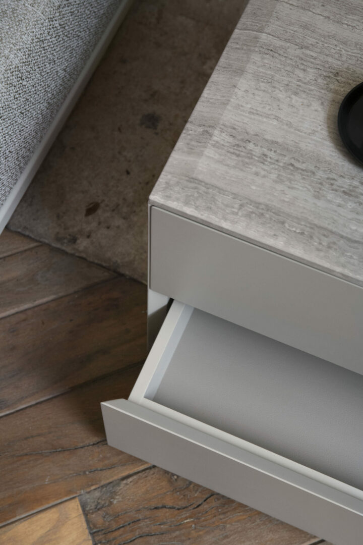 Коллекция Manhattan, вдохновленная архитектурным очарованием небоскребов в одноименном районе Нью-Йорка, может похвастаться внушительной конструкцией, полностью выполненной из массива дерева и дополненной пазами, которые при безупречном 45-градусном срезе обеспечивают доступ к выдвижным ящикам.
